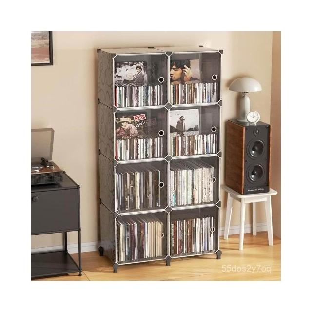 收納搭配 免運 黑膠唱片分類收納架 多層CD專輯展示櫃 可拆卸防傾倒書櫃 老唱片書籍收藏 透明防塵設計