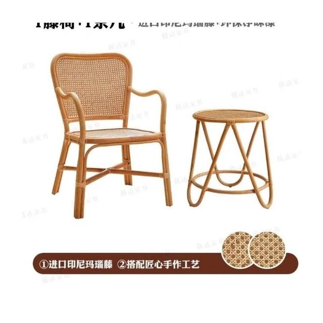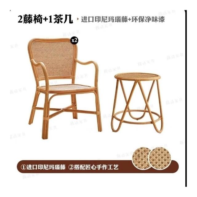 免運 熱賣🫧藤編茶幾簡約民宿藤椅家用日式餐椅北歐陽臺組閤圓形實木客廳