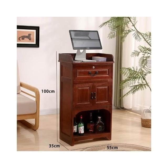 免運 實木櫃 收銀台櫃 邊櫃 帶鎖邊櫃 前台收銀櫃 小型收銀台個性網紅服裝店收款臺前台接待台實木現代簡約復古吧檯