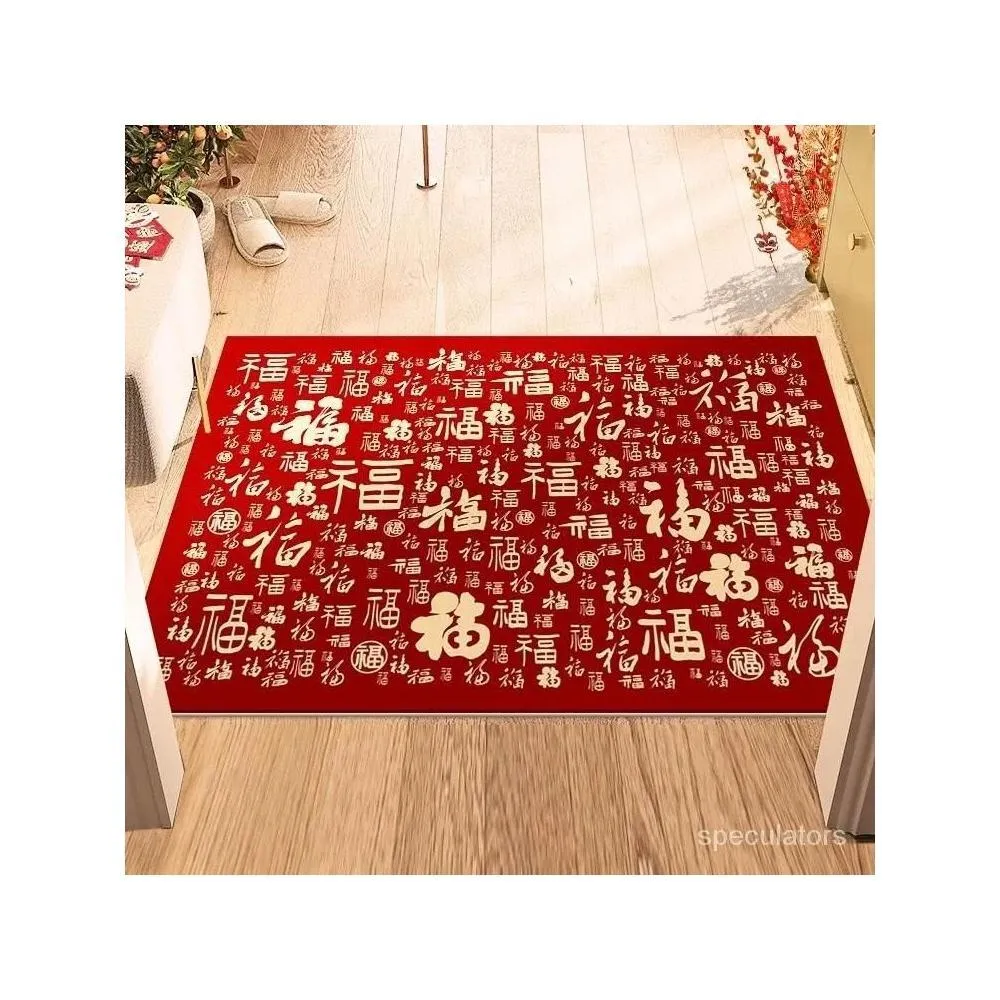 百福字 入戶門地墊 喬遷地墊 進宅大吉門墊 進門 玄關門口 中式腳墊 紅色 喜慶 地毯 地墊