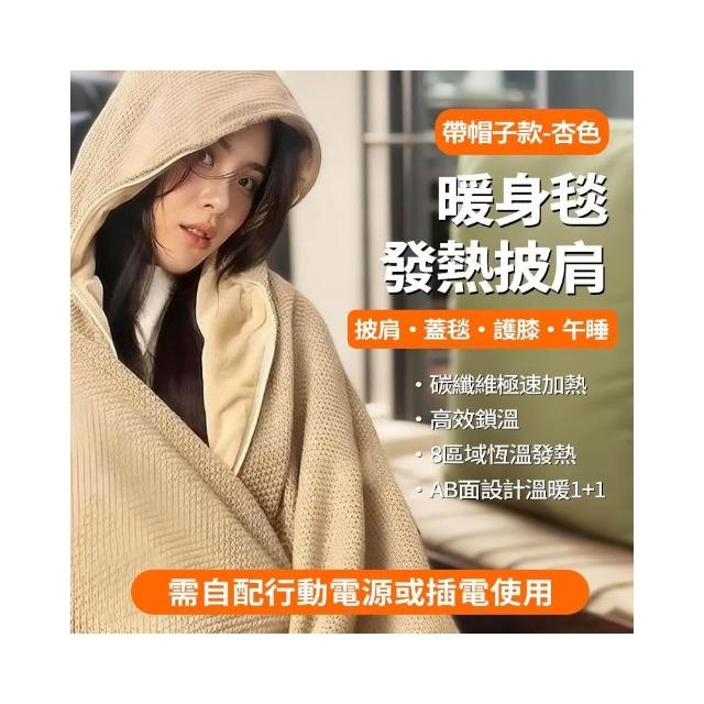 超暖發熱帶帽披肩 送父母 加熱披肩 usb電熱披肩 八區發熱披肩毯 石墨烯發熱毯 加熱毯 披肩電熱毯 可水洗 交換禮物