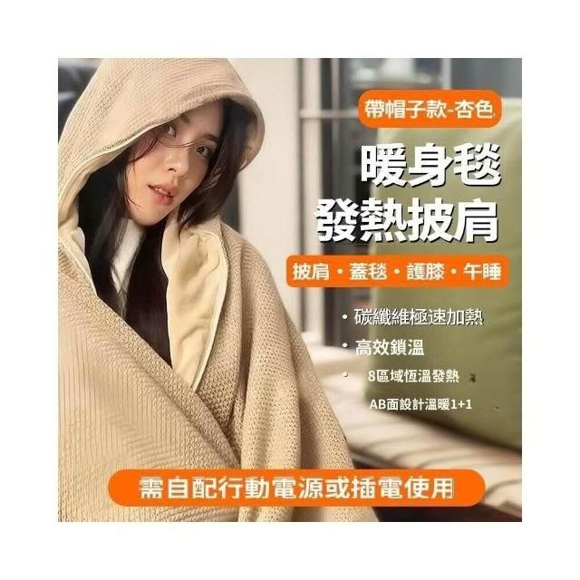 超暖發熱帶帽披肩 送父母 加熱披肩 usb電熱披肩 八區發熱披肩毯 石墨烯發熱毯 加熱毯 披肩電熱毯 可水洗 交換禮物