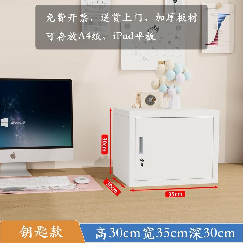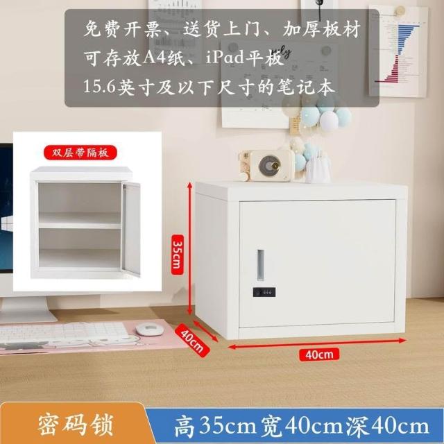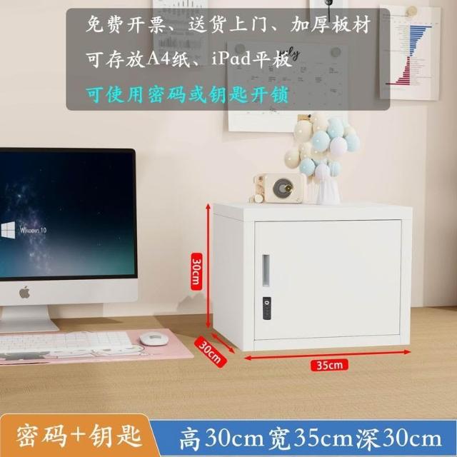 小型鐵皮文件儲物櫃家用密碼帶鎖的收納箱學生宿舍桌面指紋保管盒