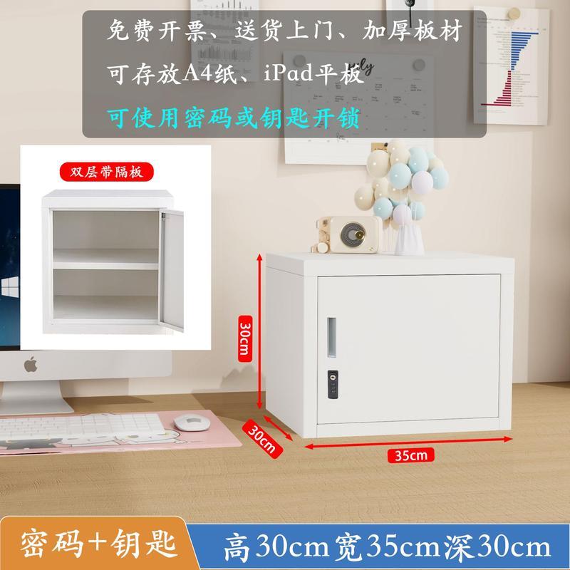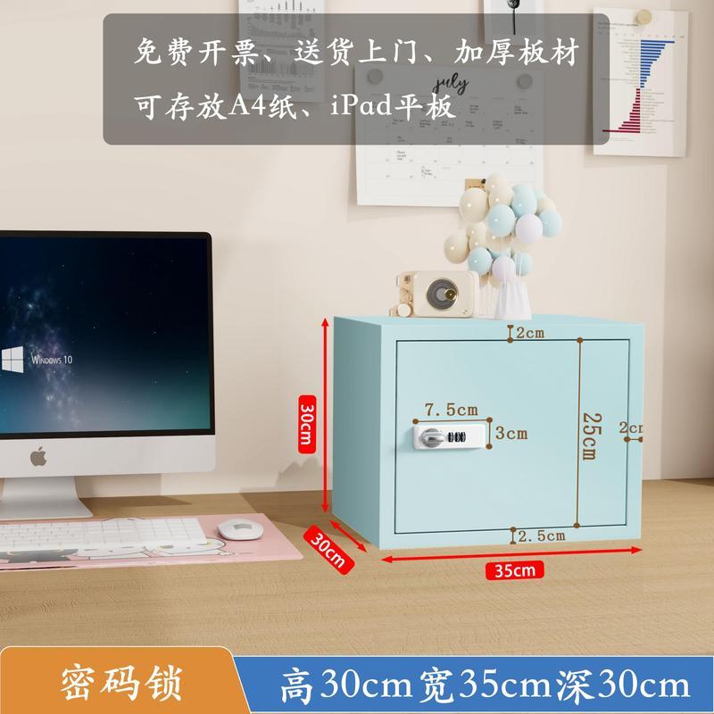 小型鐵皮文件儲物櫃家用密碼帶鎖的收納箱學生宿舍桌面指紋保管盒