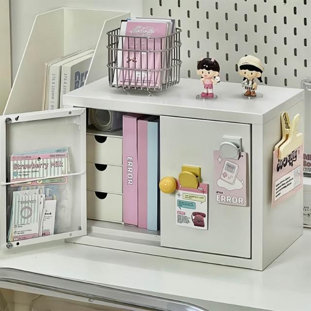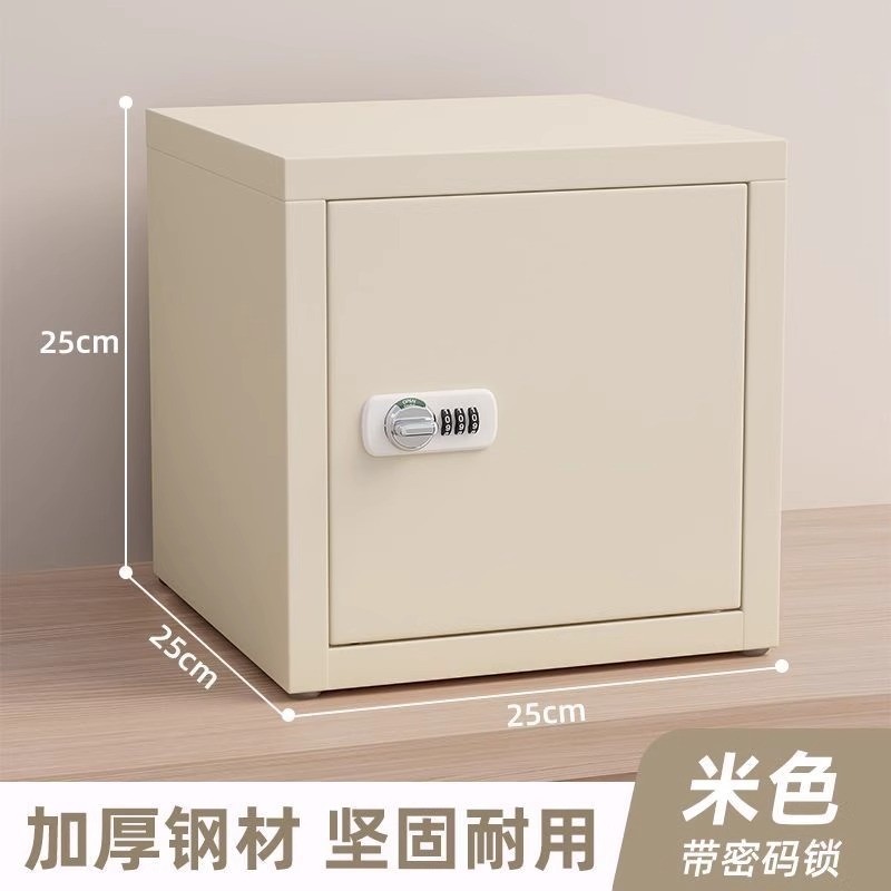 小型鐵皮文件儲物櫃家用密碼帶鎖的收納箱學生宿舍桌面指紋保管盒