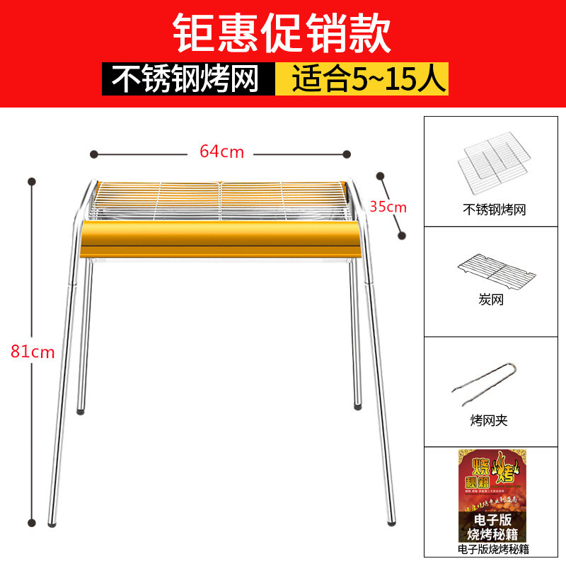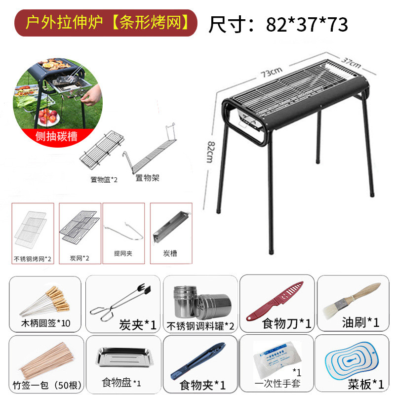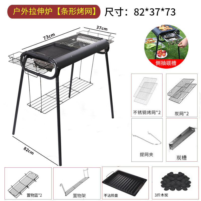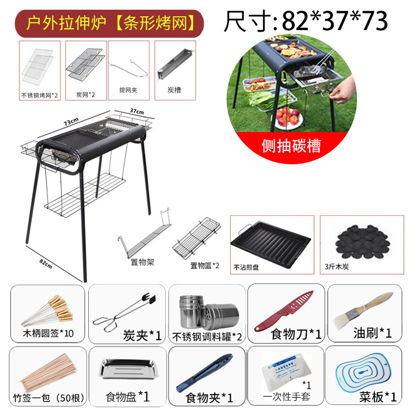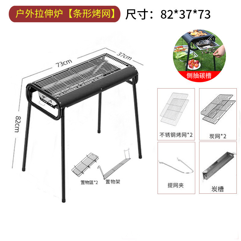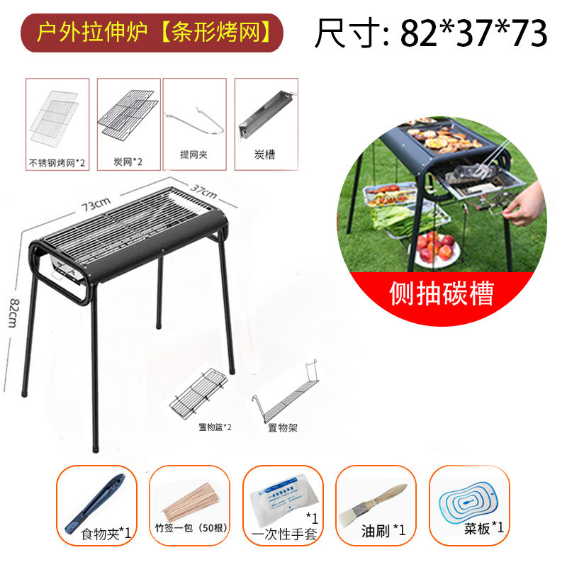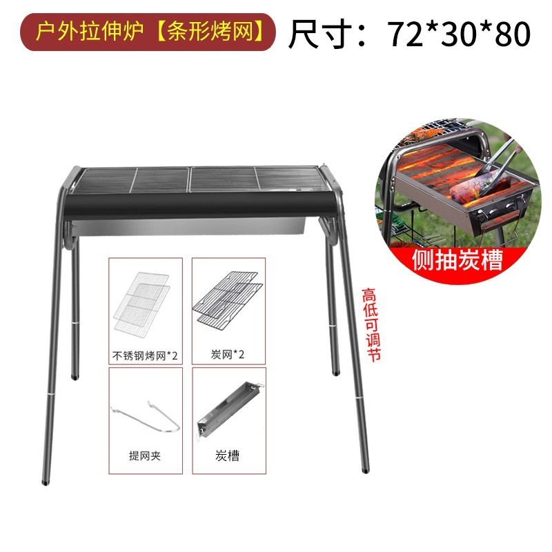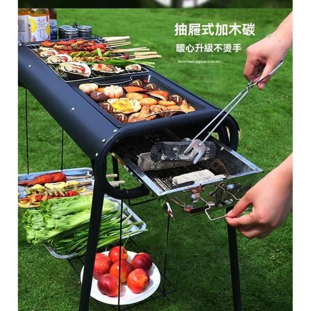 加厚不銹燒烤爐 抽拉碳槽燒烤架 戶外便攜式燒烤架 炭烤耐用 無煙多功能烤肉爐 烤串爐 置物架 烤肉架
