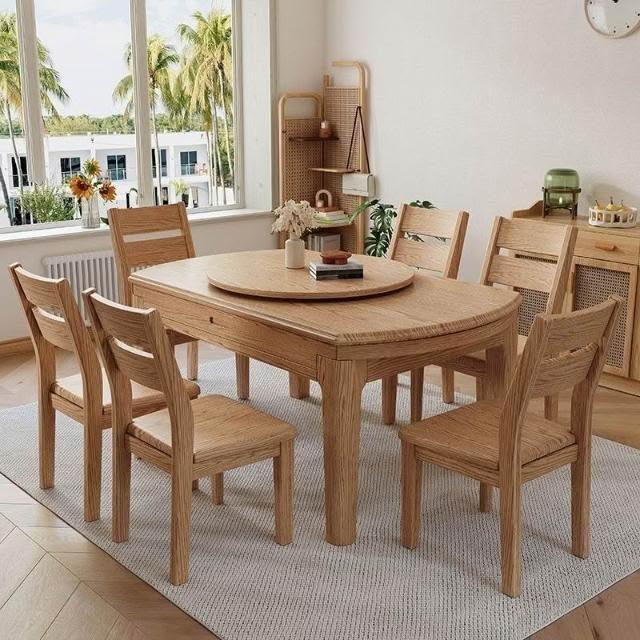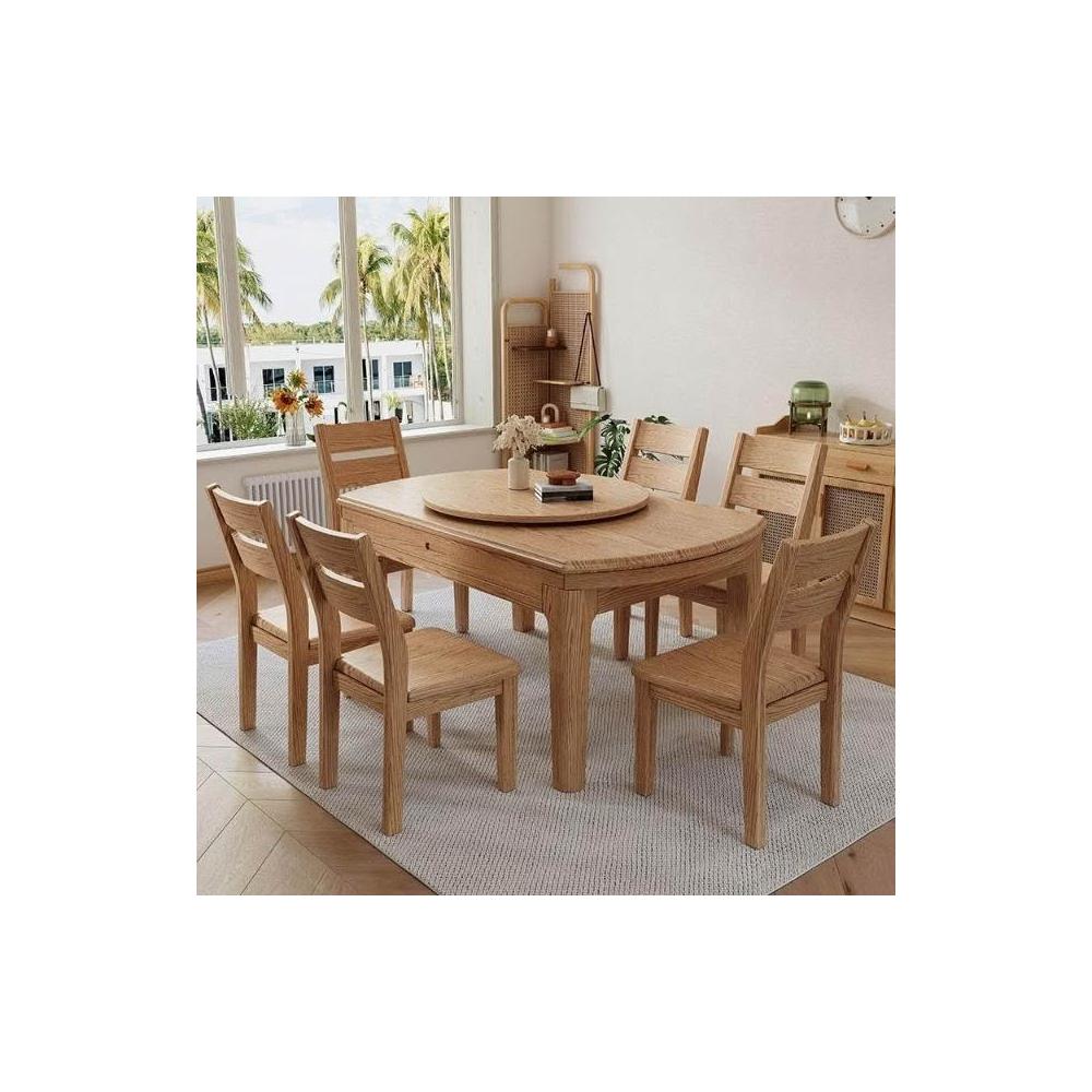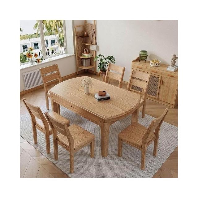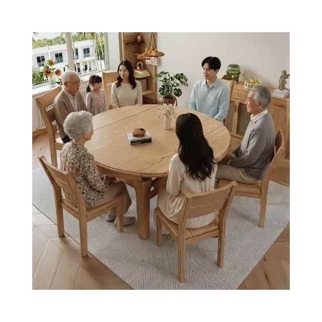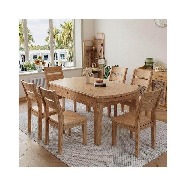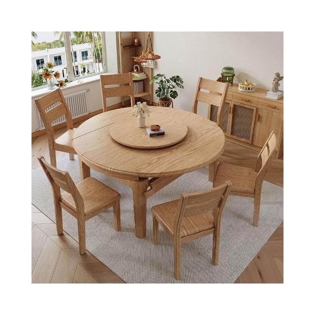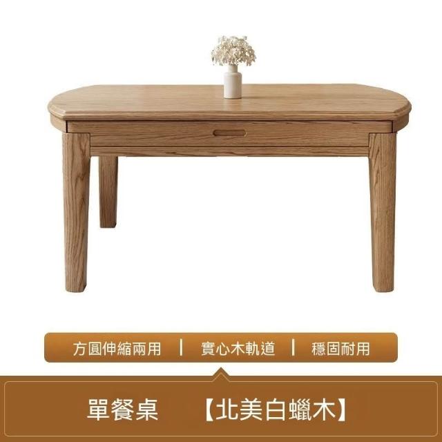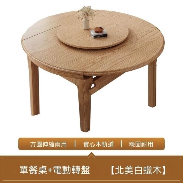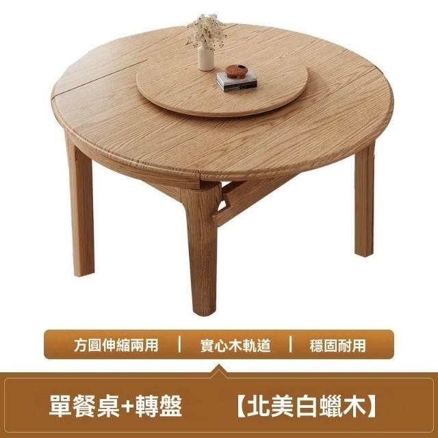 白蠟木實木餐桌組合全實木餐桌方圓兩用可摺疊伸縮家用客廳新中式