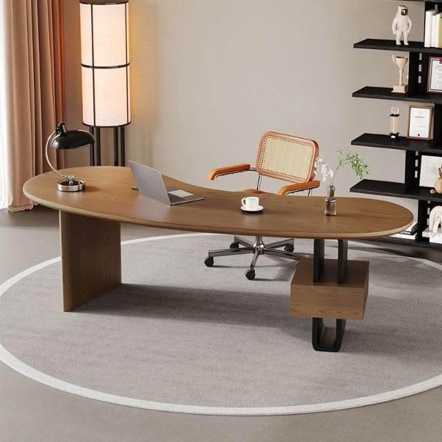 免運【可開統編】現代簡約老闆桌 實木異形老闆桌 辦公桌 設計師創意款書桌工作臺高級感簡約