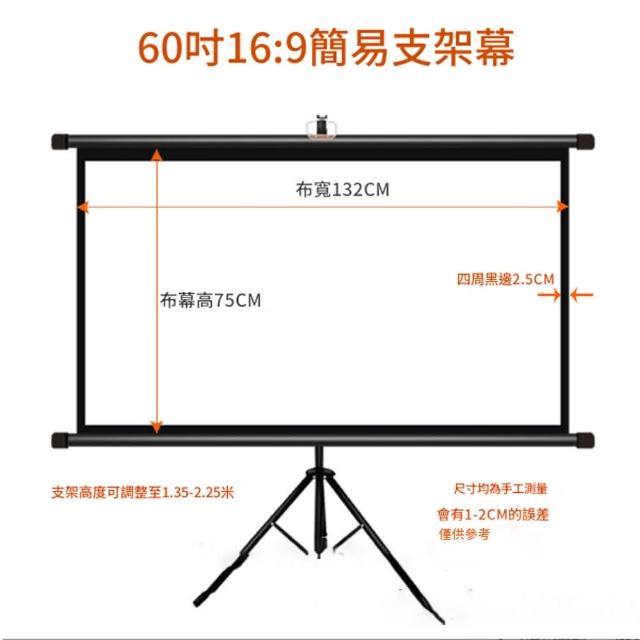 便攜式支架幕 幕布 家用幕布 移動投影布幕 60-100吋 螢幕落地 壁挂投影布幕 支架布幕 投影幕布 落地支架