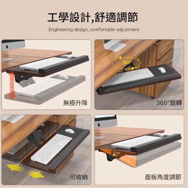 鍵盤架 鍵盤托架 可調節旋轉架托盤 人體工學鍵盤架 鍵盤抽屜 桌下鍵盤托架 角度高度可調節 鍵盤收納 鼠標架