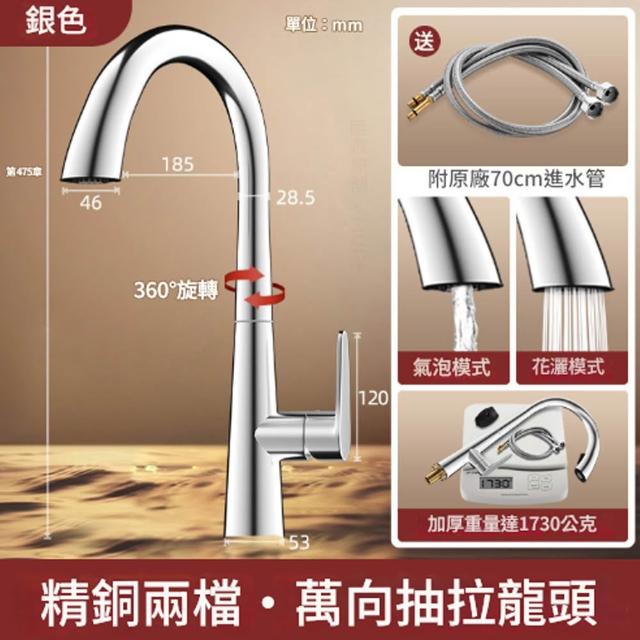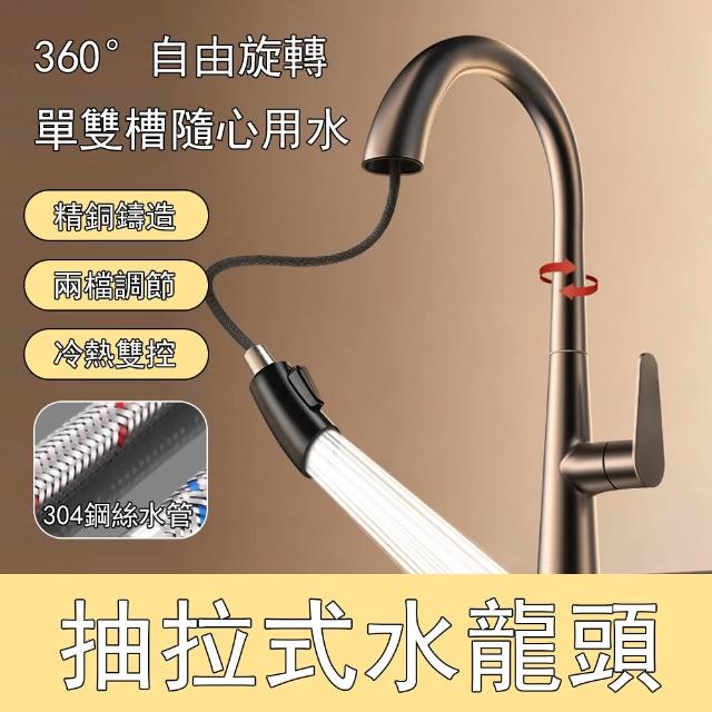 凱琦家居廚房抽拉式水龍頭 全銅水龍頭 360度旋轉 冷熱雙控 陶瓷閥芯 耐腐蝕/耐高溫 流理台/洗碗槽適用