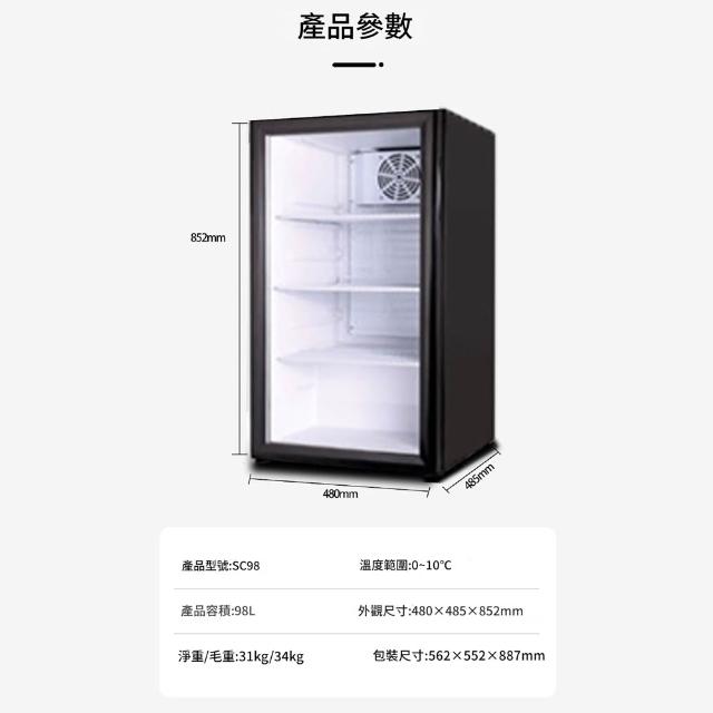 TEC 玻璃門小冰箱 壓縮機臺式商用櫃 黑色98L