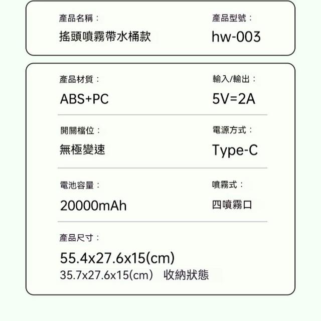 TEC 戶外露營風扇 可搖頭便攜式風扇 長續航風扇 風扇 55/28/16cm 噴霧製冷露營風扇