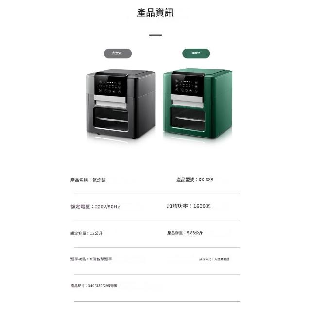 TEC 智能多功能空氣炸 可視不鏽鋼智能空炸鍋 110V氣炸鍋 無油炸雞薯條12電炸鍋