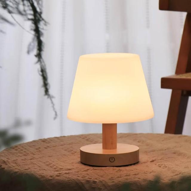TEC 原木檯燈 小巧不佔空間 護眼柔光 暖光 觸控式開關 原木底座 牀頭燈
