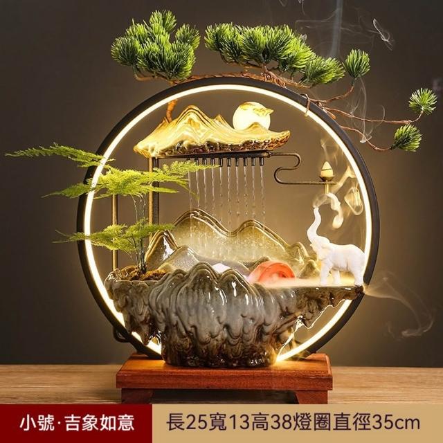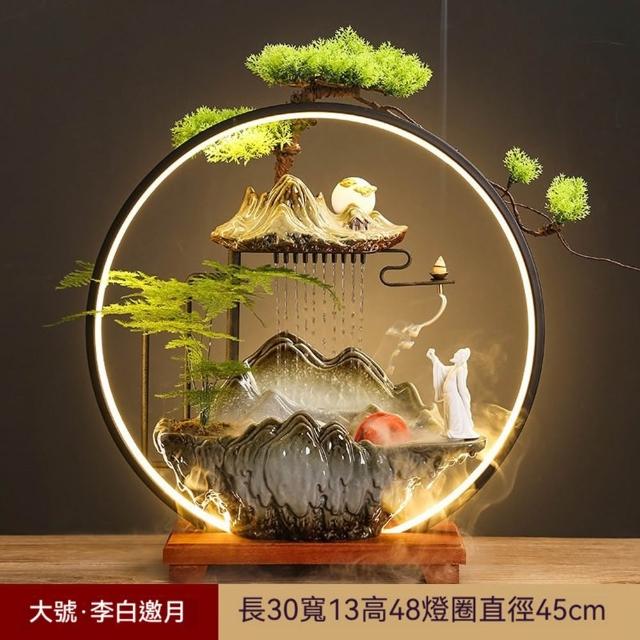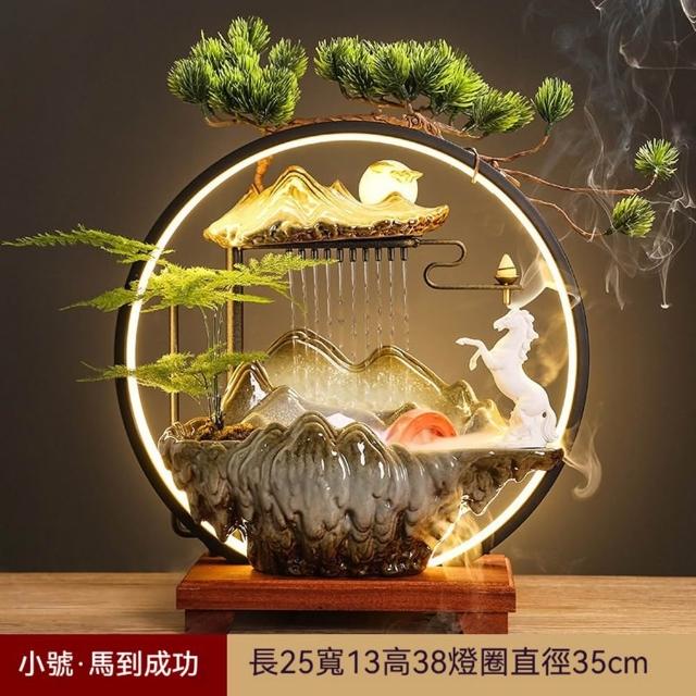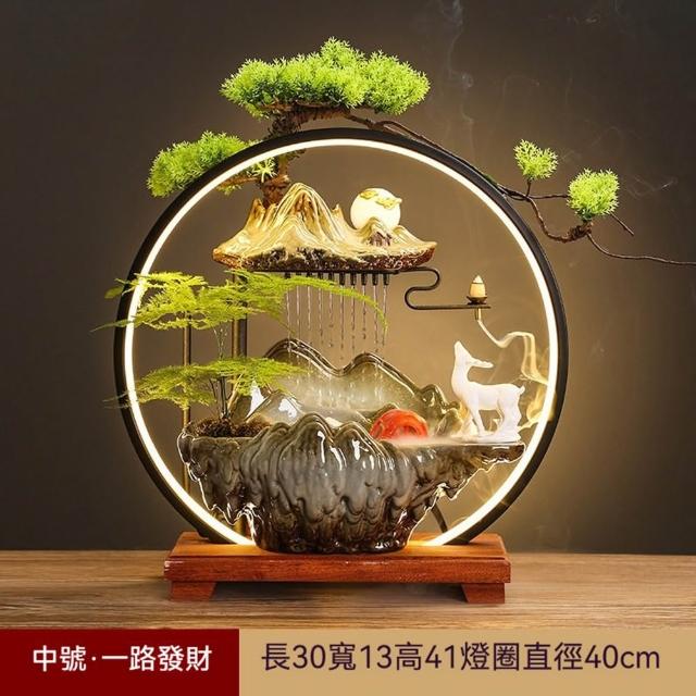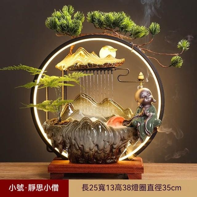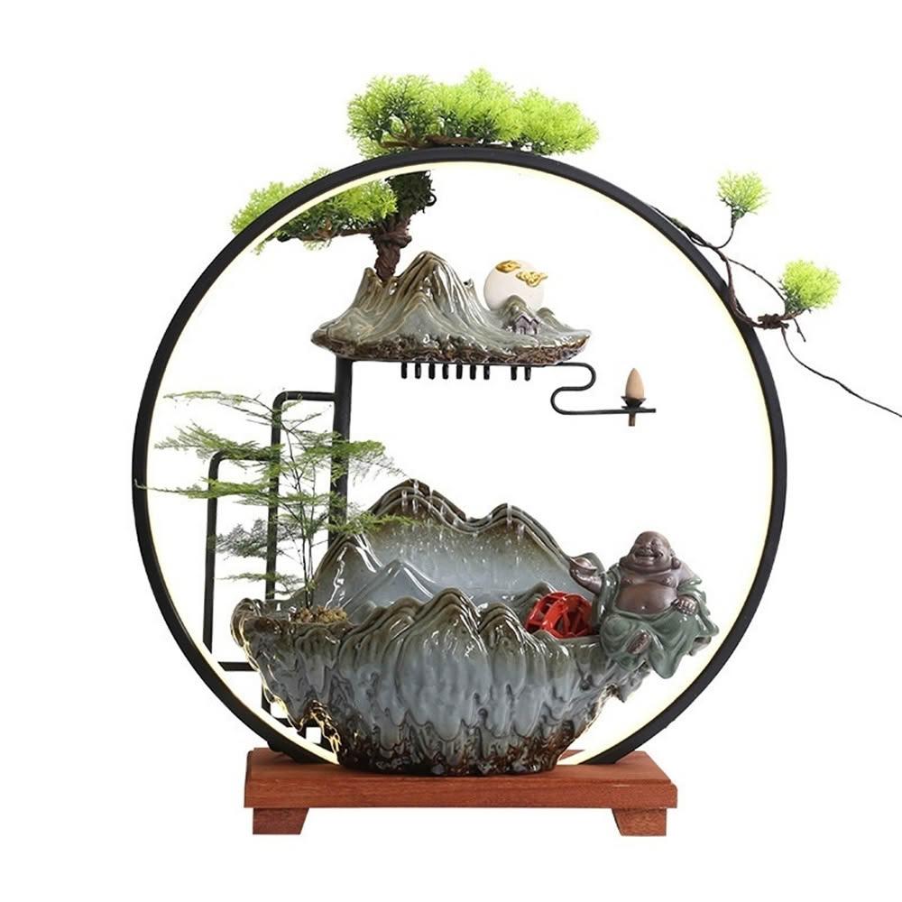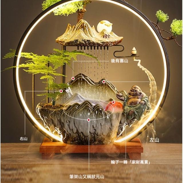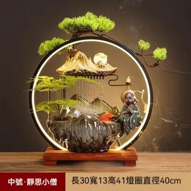 TEC 桌面流水擺設 風水輪轉動 禪意山水造景 禪意彌勒佛 靜心放鬆 茶桌造景
