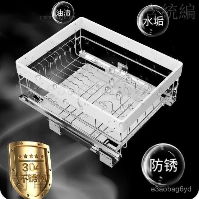 熱銷 拉籃櫥櫃 收納櫃 抽屜櫃 304不銹鋼拉籃廚房櫥櫃窄迷你小櫃子抽屜式開門雙三層碗碟盤拉藍