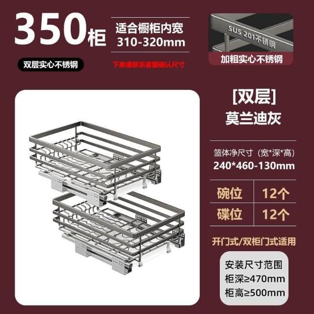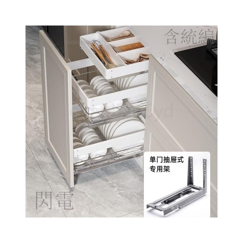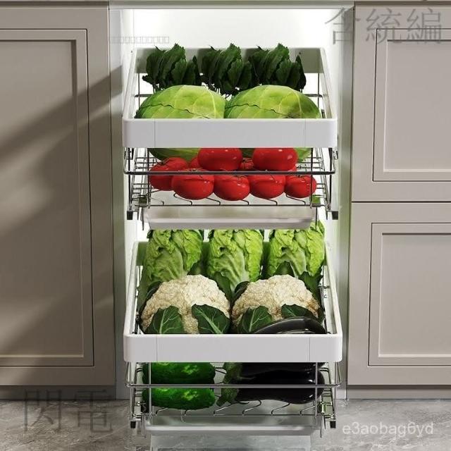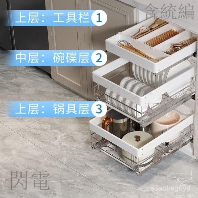 熱銷 拉籃櫥櫃 收納櫃 抽屜櫃 304不銹鋼拉籃廚房櫥櫃窄迷你小櫃子抽屜式開門雙三層碗碟盤拉藍