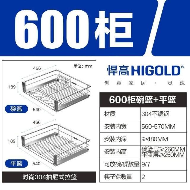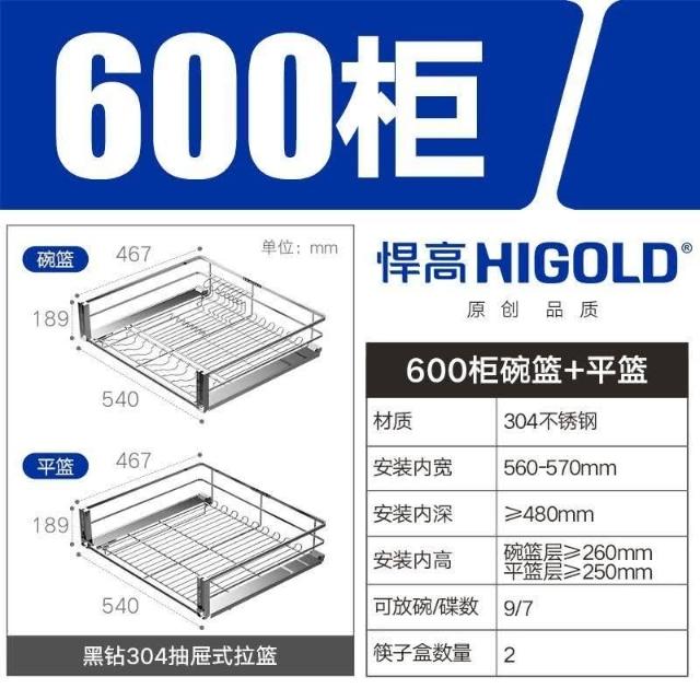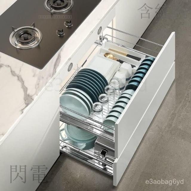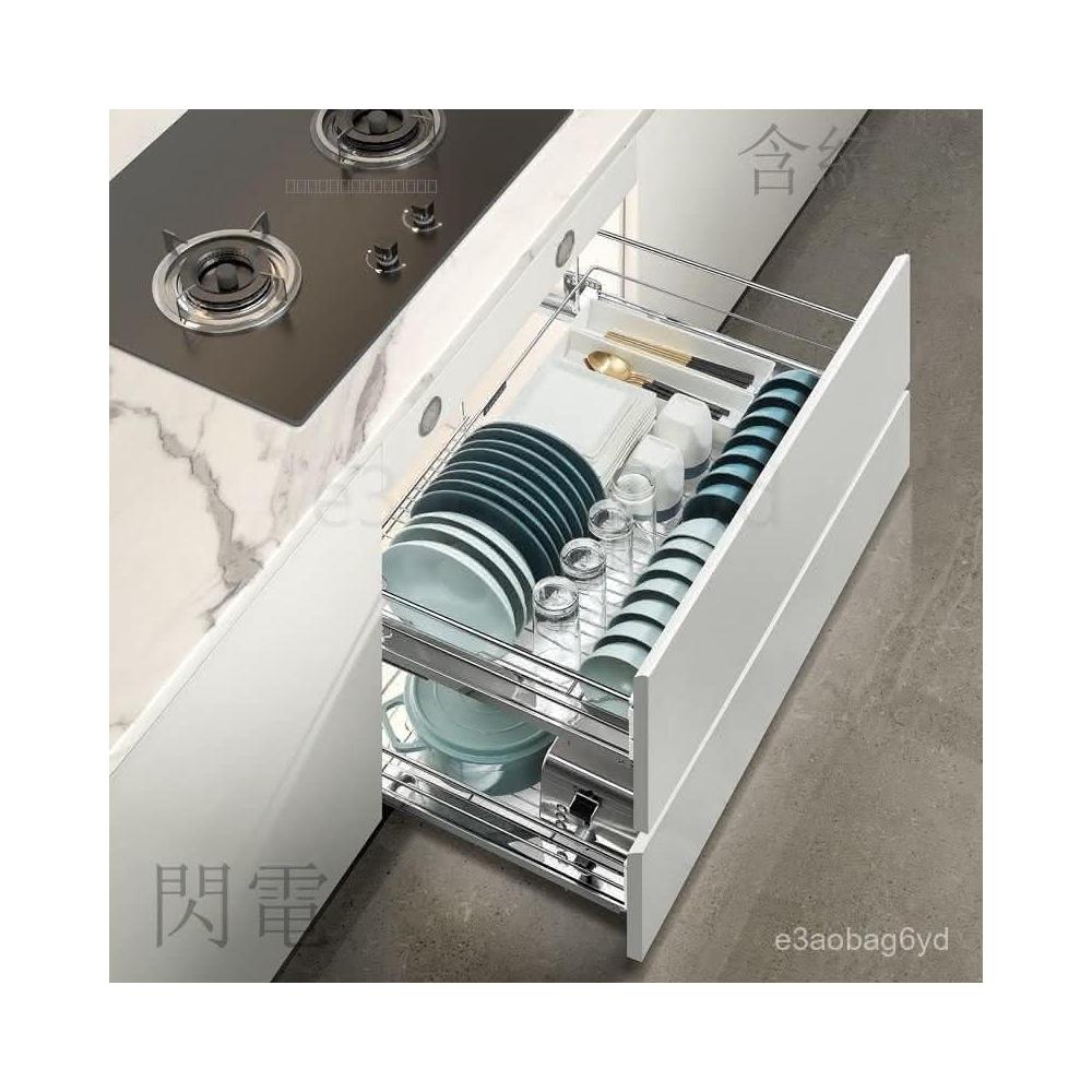 熱銷 拉籃櫥櫃 收納櫃 抽屜櫃 悍高拉籃抽屜式黑鑽拉籃304不銹鋼廚房櫃體碗架抽拉式櫥櫃拉籃