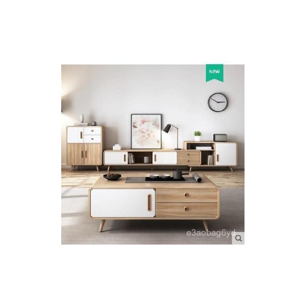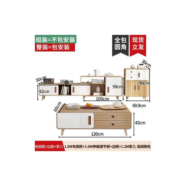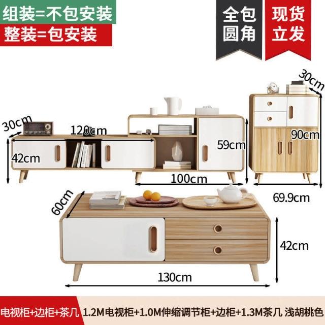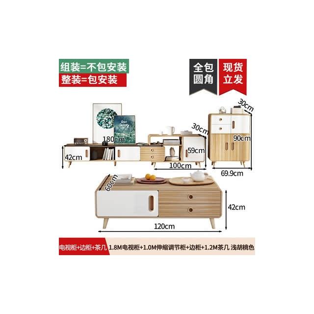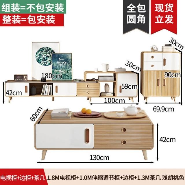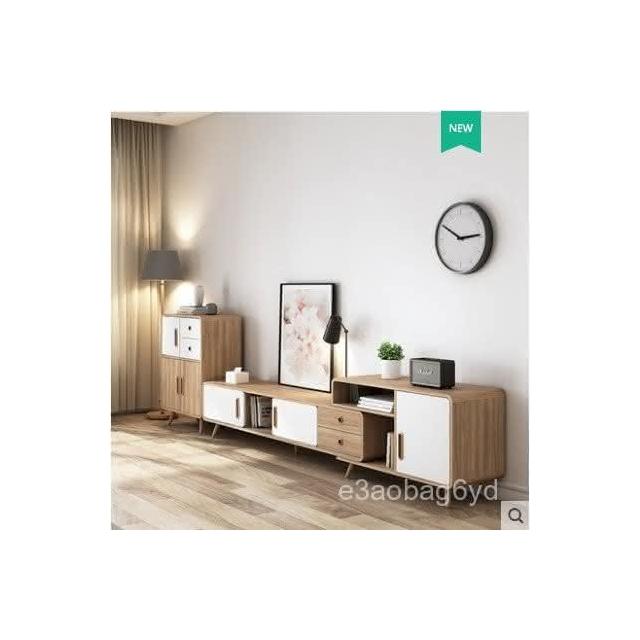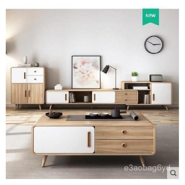 含發票 北歐電視櫃茶幾組閤套裝可伸縮實木圓角櫃日式小戶型簡約客廳地櫃