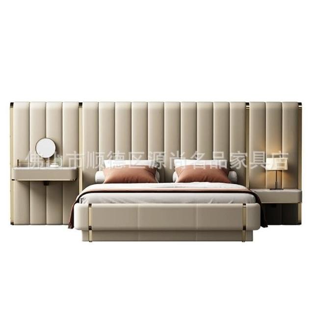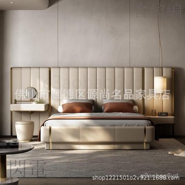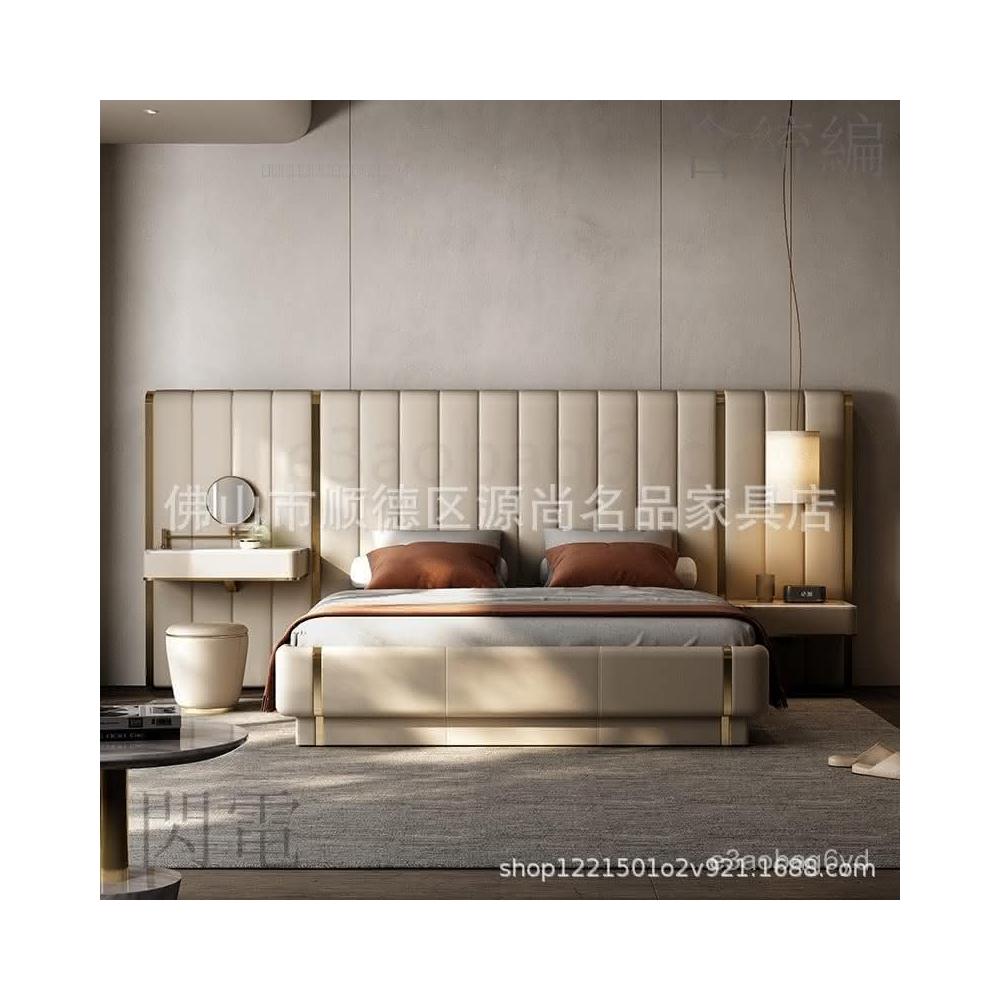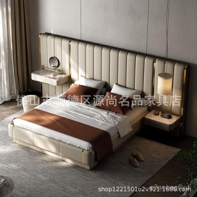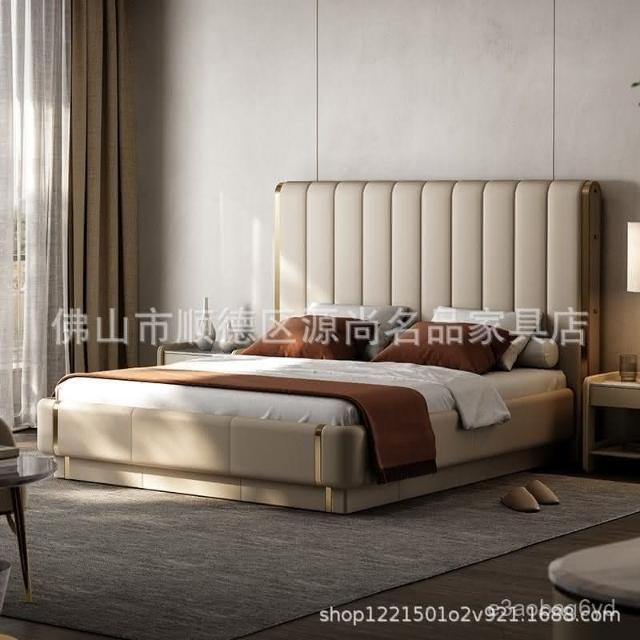 工廠直髮 工廠直髮 魅力大師意式極簡真皮床輕奢現代別墅高端正品家具主臥全真皮大床
