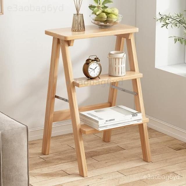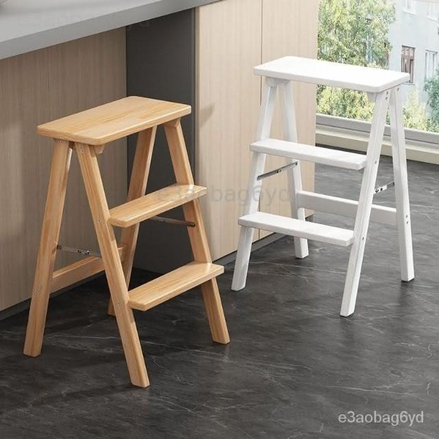 (新品下殺) 折疊梯凳傢用梯子實木凳子廚房吧臺凳登高三步梯多功能收銀臺