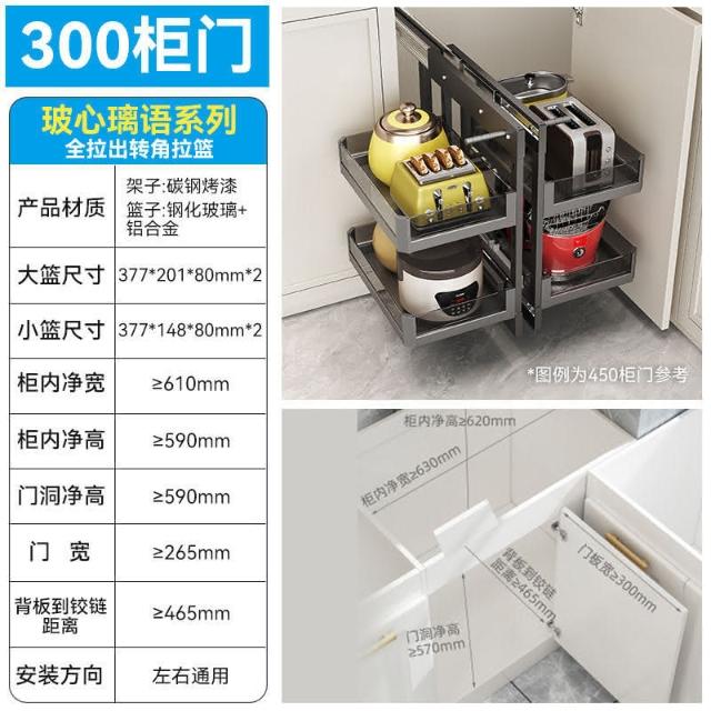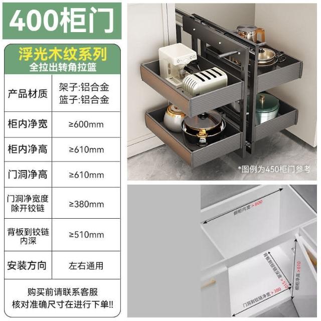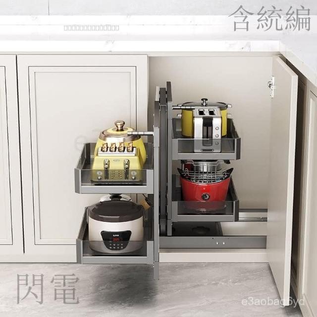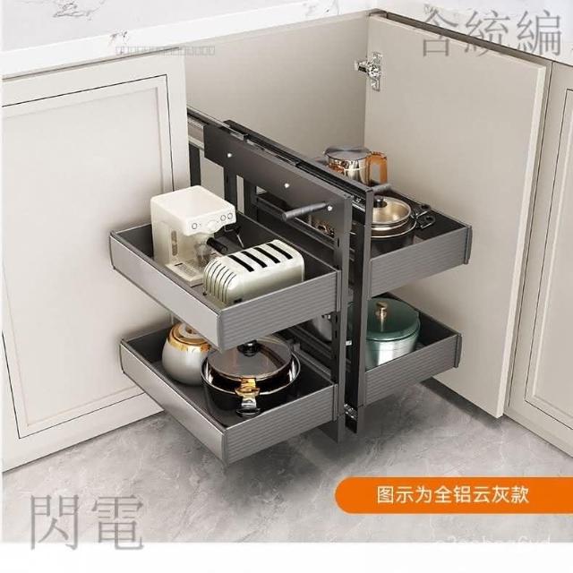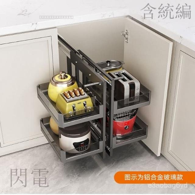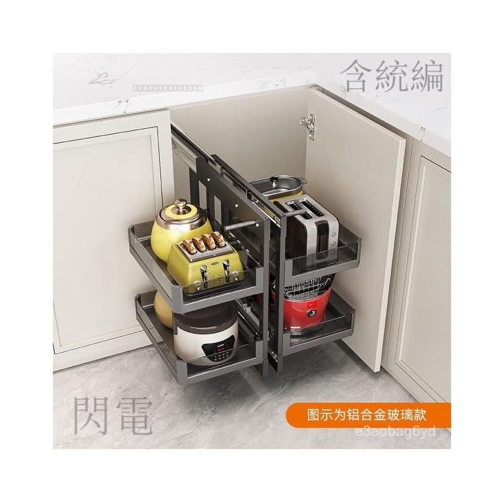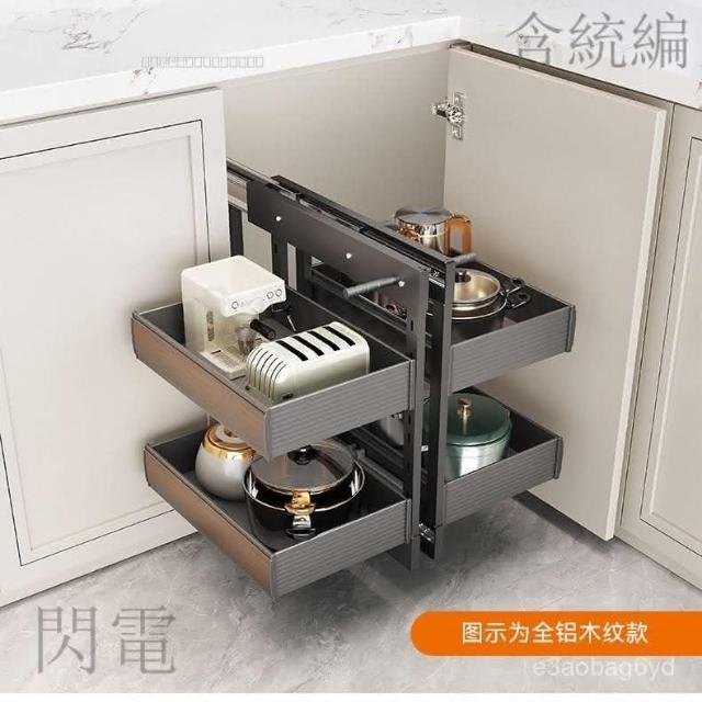 熱銷 拉籃櫥櫃 收納櫃 抽屜櫃 廚房櫥櫃轉角拉籃內置收納架置物架拐角全鋁旋轉小怪物全拉出