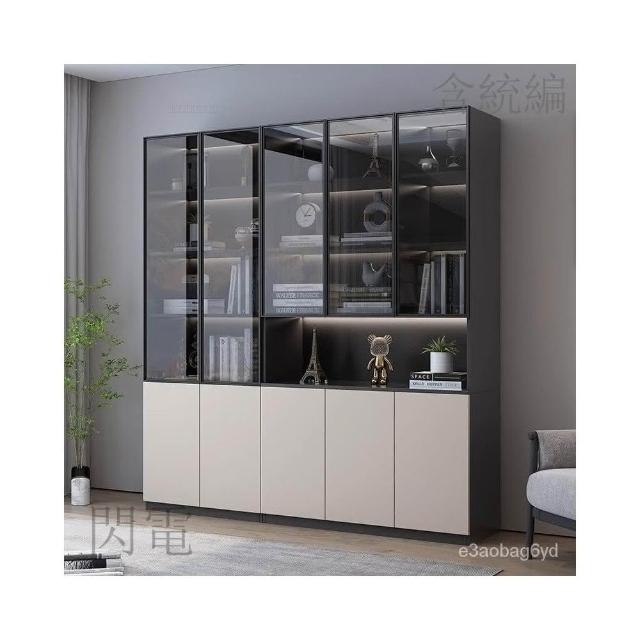 輕奢實木書櫃玻璃門組閤展示櫃家用客廳儲物櫃一體整墻防塵收納櫃