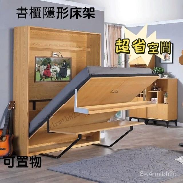 書桌書架隱形床多功能組閤省空間墻上隱藏折疊伸縮床一體旋轉兩用 廠傢直銷