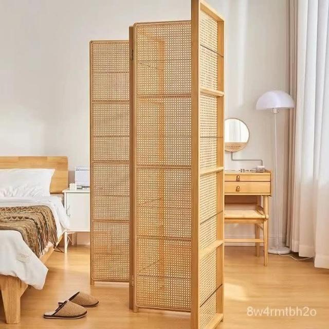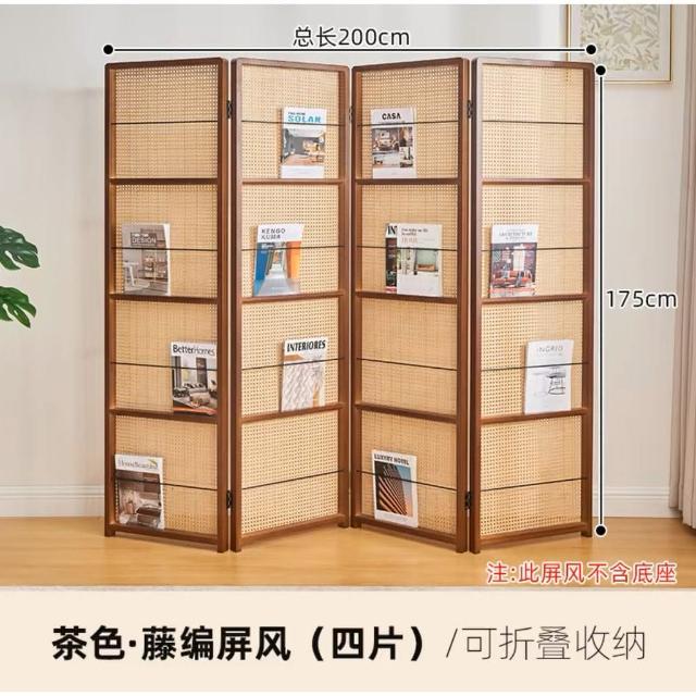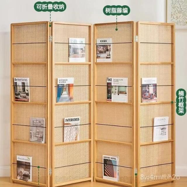 屏風隔斷藤編折疊玄關傢用客廳簡約移動雜誌書架入戶遮擋木質屏風 開發票