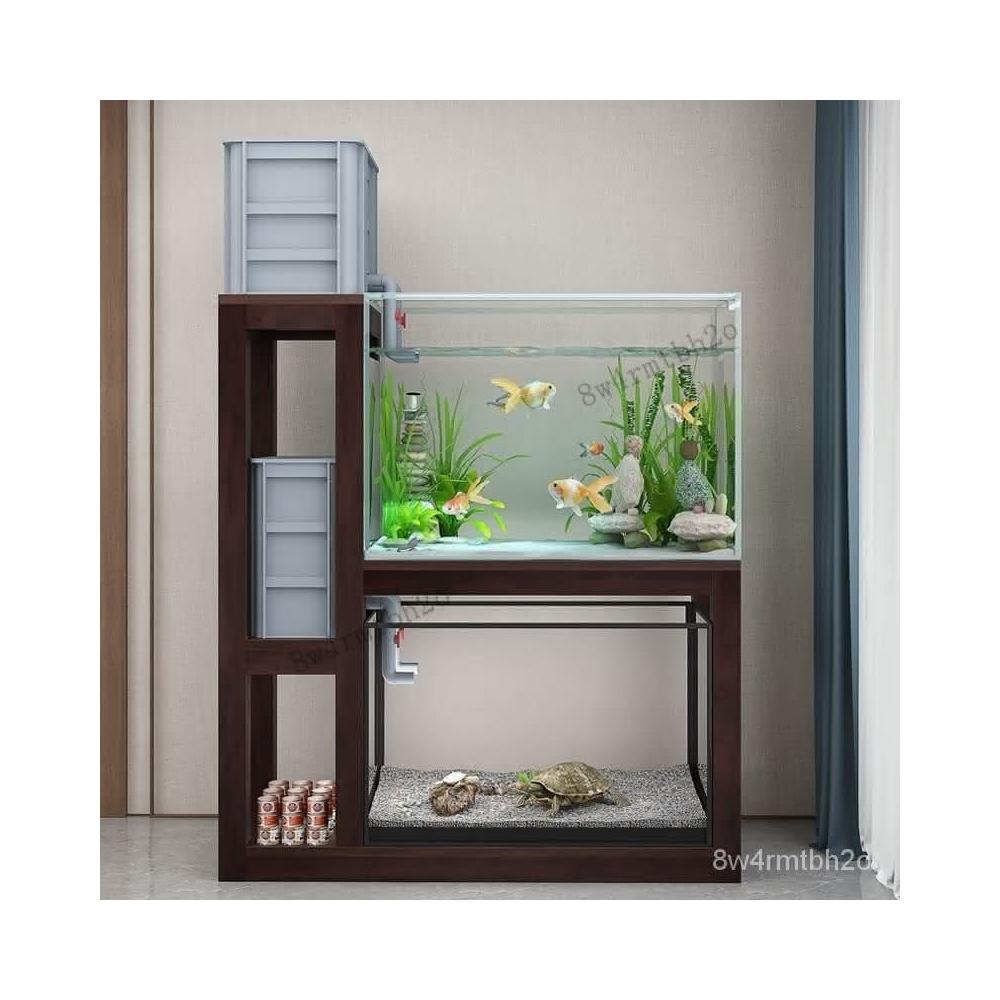 廠傢直銷 魚缸底櫃底座實木魚缸架高低架水族箱上過濾置物架落地魚缸承重架