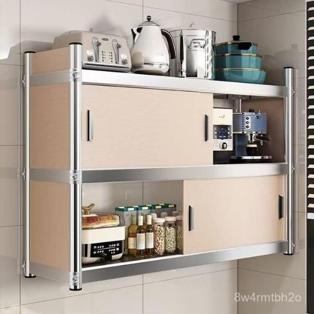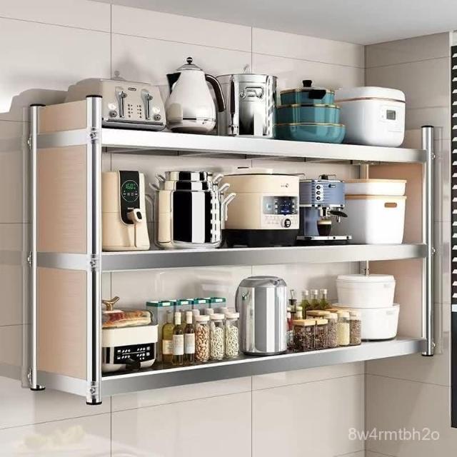 廠家直銷/破損補寄 不銹鋼廚房櫥櫃置物架壁掛式微波爐墻壁墻上收納多功能墻麵儲物櫃