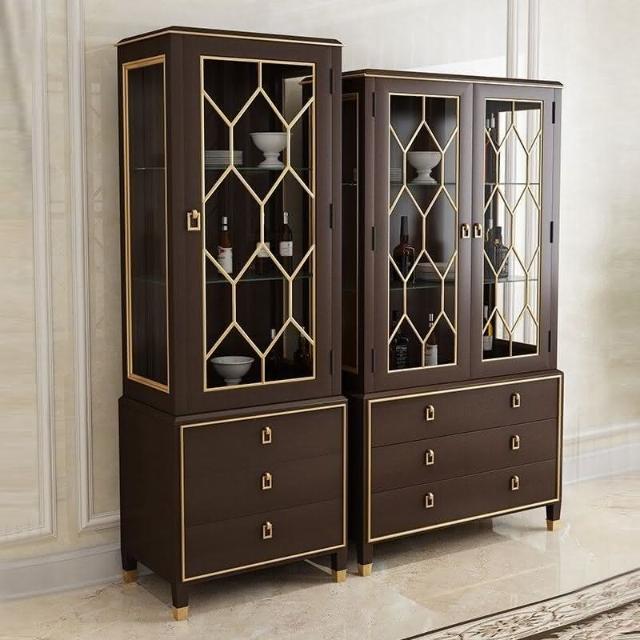 廠家直銷 意式玻璃酒櫃靠墻客廳輕奢高檔歐式展示櫃新款實木儲物陳列櫃邊櫃