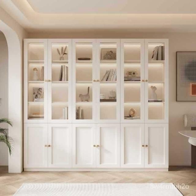 書櫃實木收納櫃展示櫃玻璃門法式傢用防塵儲物櫃客廳白色書架櫃子*源頭廠傢 開統編
