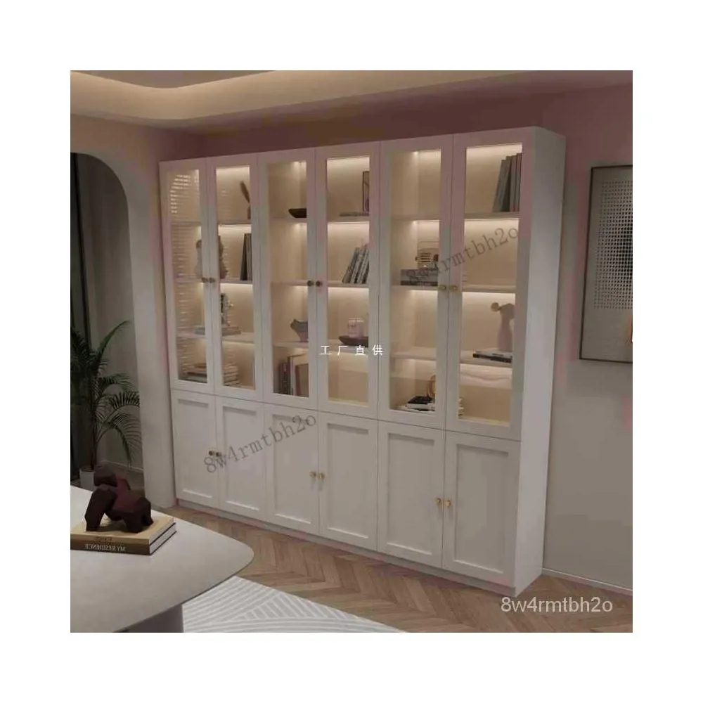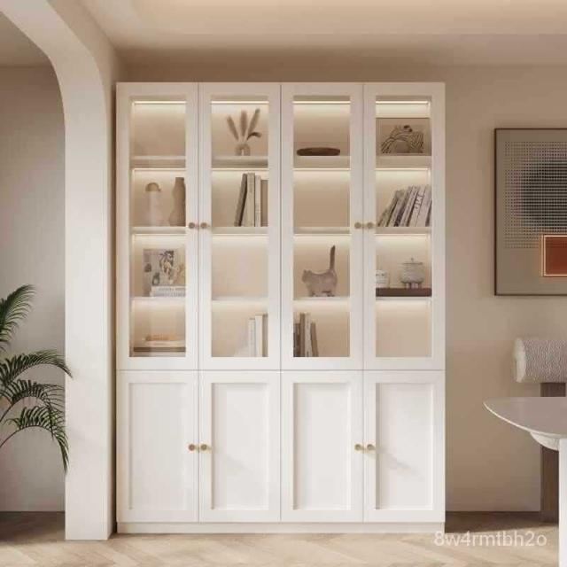 書櫃實木收納櫃展示櫃玻璃門法式傢用防塵儲物櫃客廳白色書架櫃子*源頭廠傢 開統編