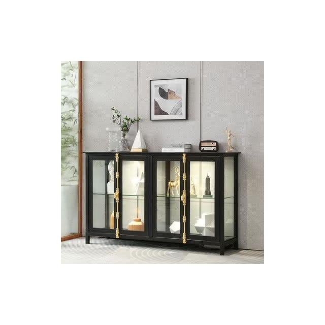 北歐透明玻璃展示櫃帶燈手辦樂高收藏櫃鐵藝酒櫃精品陳列櫃可帶鎖*破損補寄/廠家直供