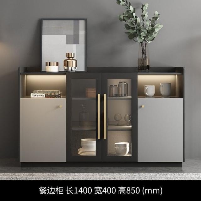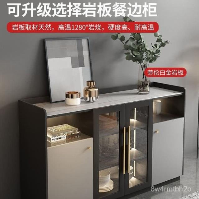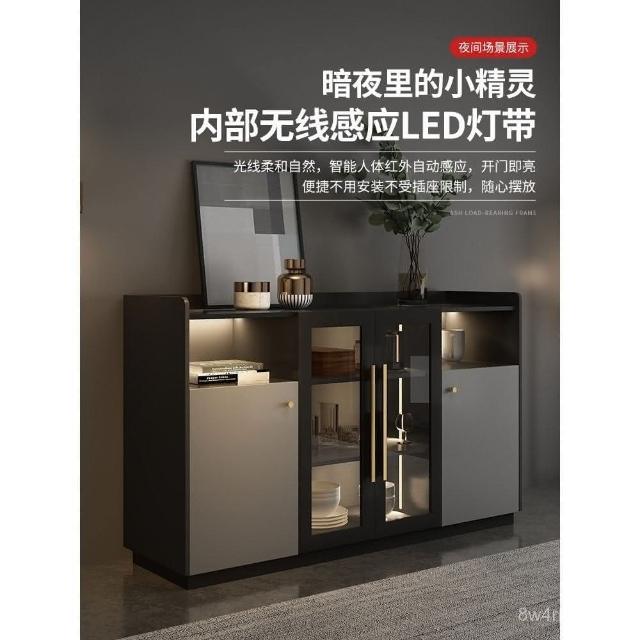 廠家直銷餐邊櫃極簡北歐巖闆現代酒櫃簡約餐廳家具LED燈置物櫃意式玄關櫃