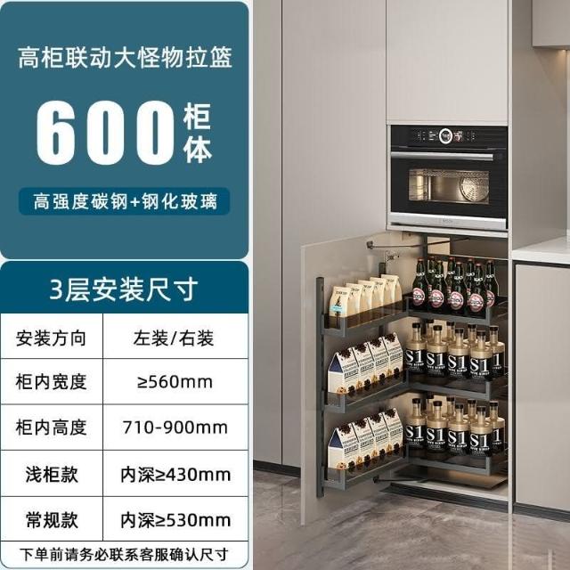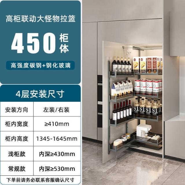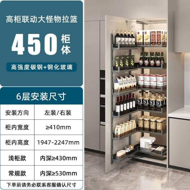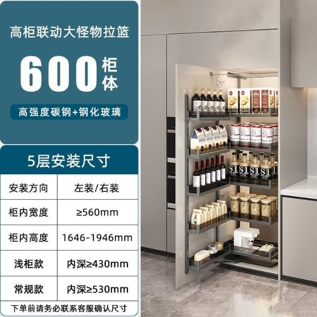 含發票 廚房大怪物拉籃高櫃零食櫃開門式高深拉籃調味收納櫃阻尼聯動拉籃