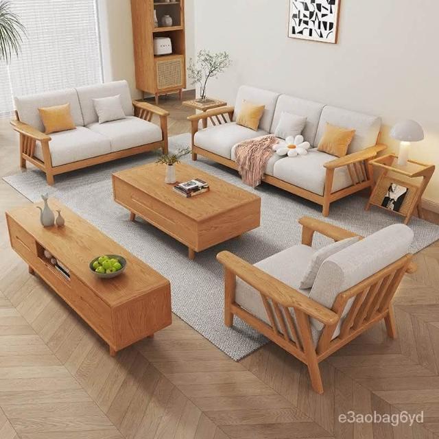 可開發票 傢用桌子 茶幾 設計師茶桌 侘寂風全實木白蠟木沙髮客廳大小戶型轉角貴妃組閤多人位沙髮傢具