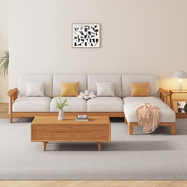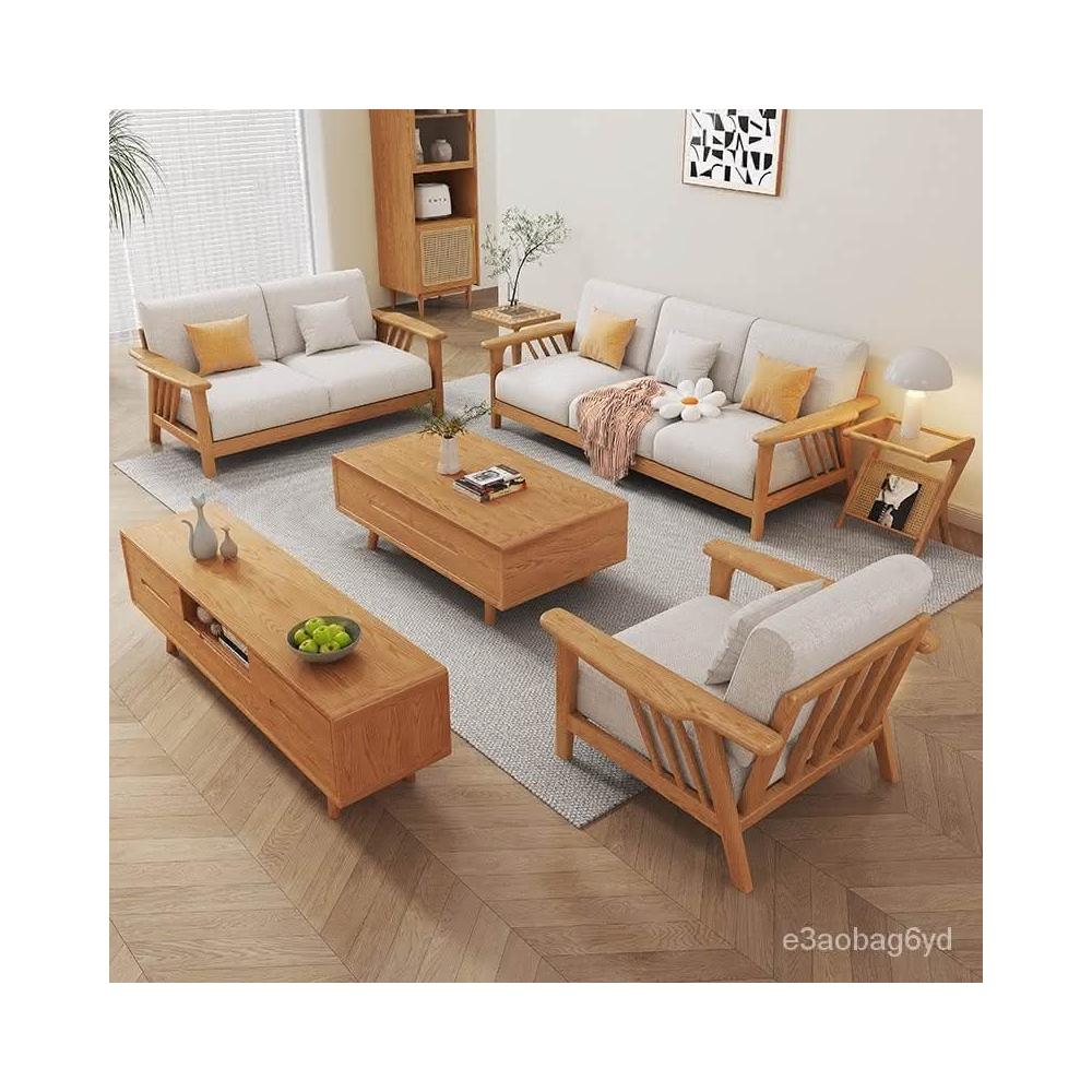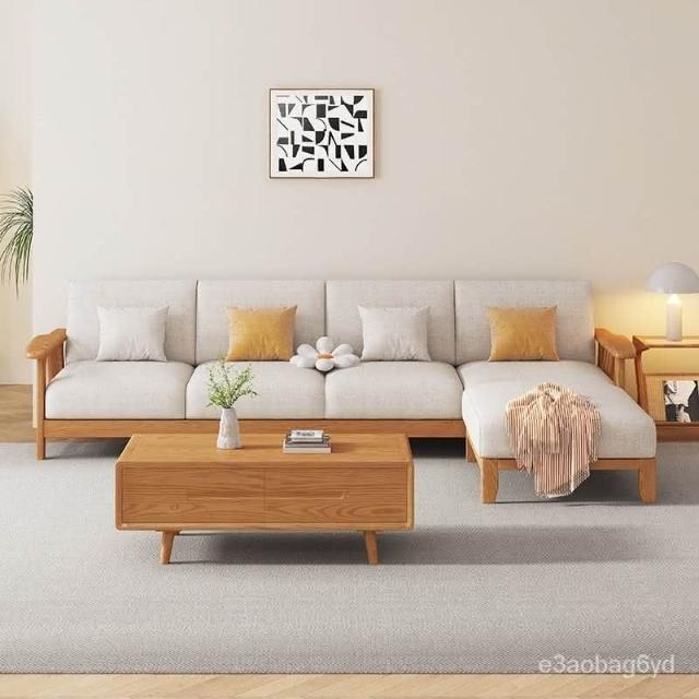可開發票 傢用桌子 茶幾 設計師茶桌 侘寂風全實木白蠟木沙髮客廳大小戶型轉角貴妃組閤多人位沙髮傢具