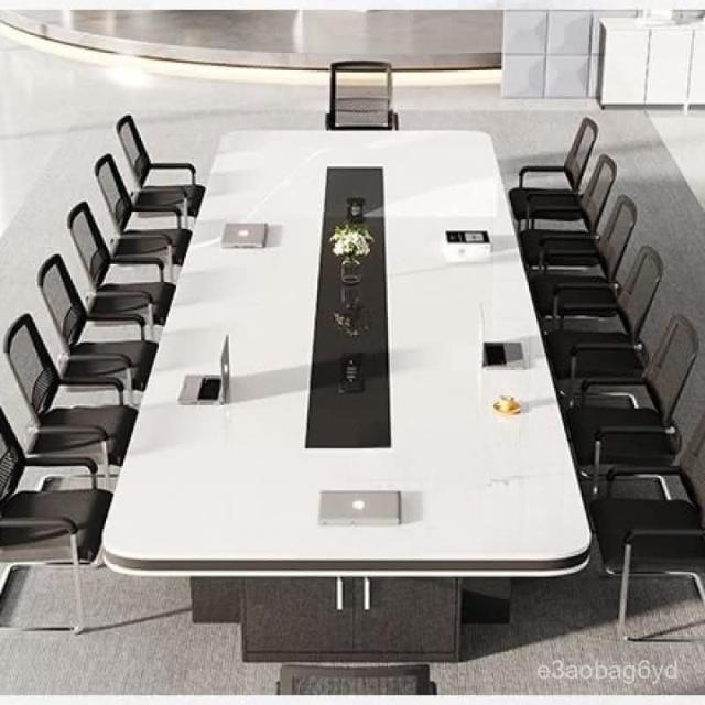 含發票 超值辦公桌 工作臺 洽談桌 會議專用桌 烤漆會議長桌白色大型會議室辦公桌椅組閤辦公室培訓接待洽談桌