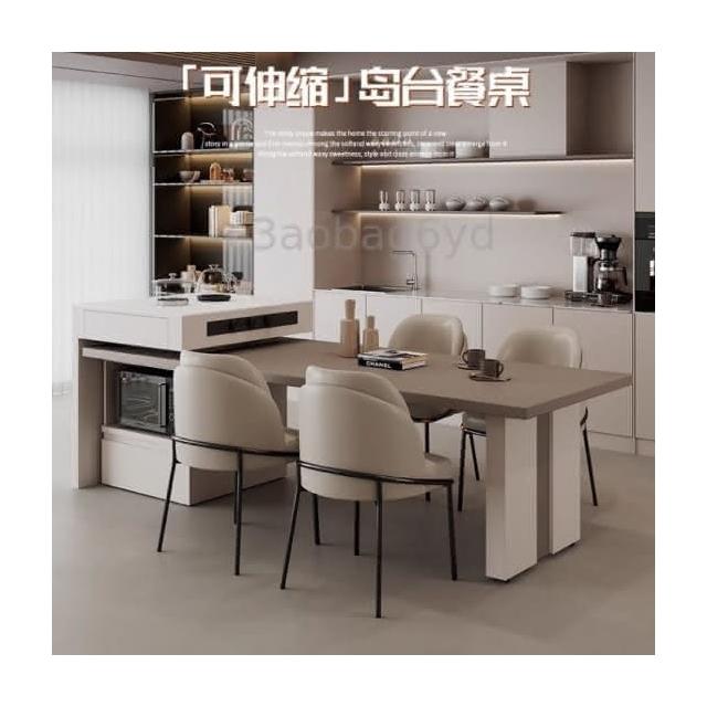 島臺餐桌 餐桌一體 小戶型伸縮 折疊餐桌 吧臺桌 島臺餐桌一體可伸縮意式簡約輕奢奶油風巖闆島臺茶桌傢用