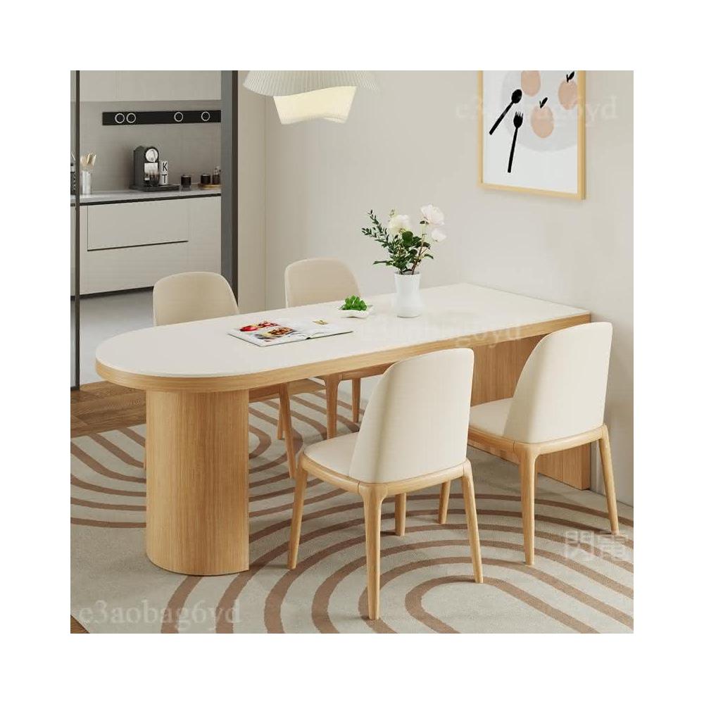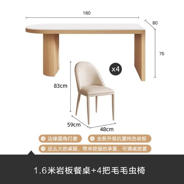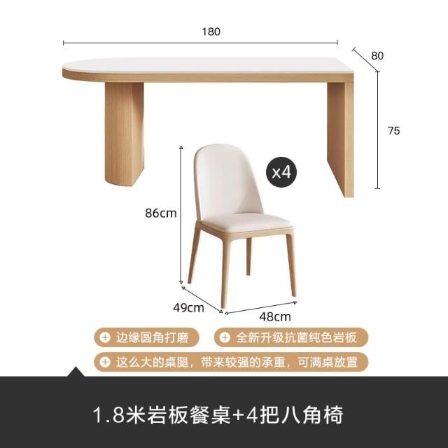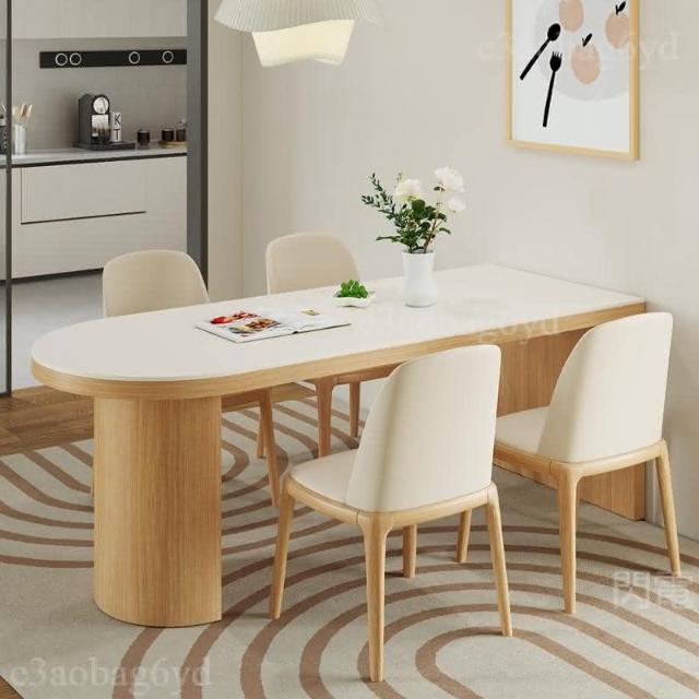 新裝潢必備 岩板餐桌 家用岩板桌 實木岩板餐桌家用小戶型現代簡約原木奶油風北歐半圓島台靠牆飯桌