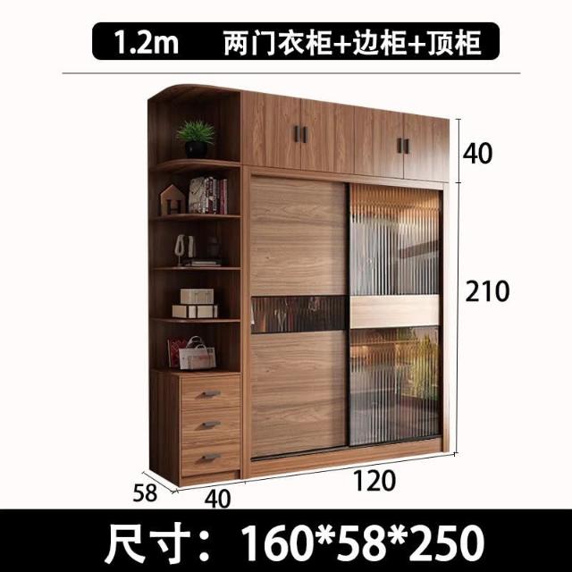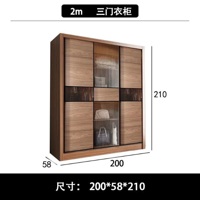 含發票 北歐推拉門衣櫃衚桃色長虹玻璃移滑門衣櫥成品組閤儲物櫃傢用臥室