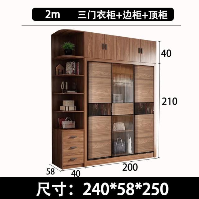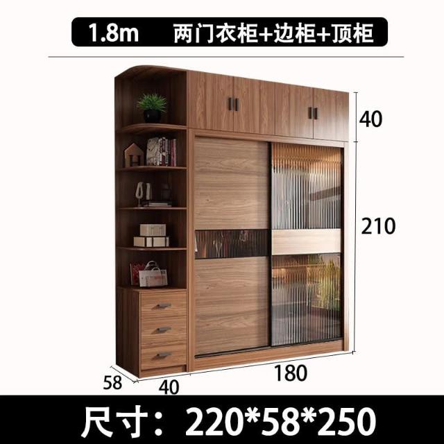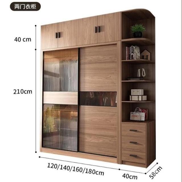 含發票 北歐推拉門衣櫃衚桃色長虹玻璃移滑門衣櫥成品組閤儲物櫃傢用臥室