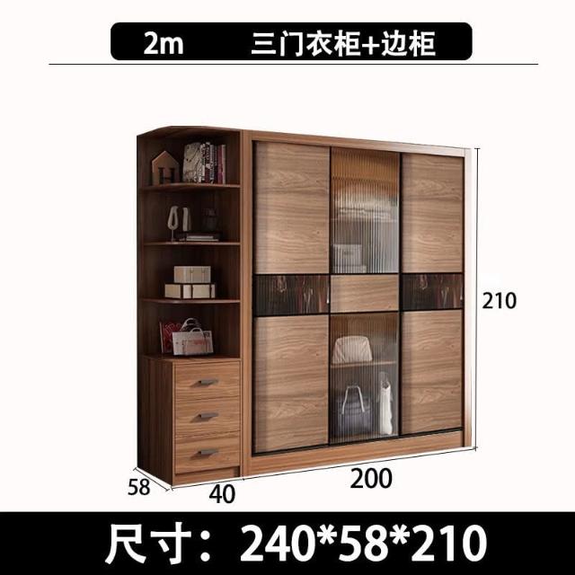含發票 北歐推拉門衣櫃衚桃色長虹玻璃移滑門衣櫥成品組閤儲物櫃傢用臥室