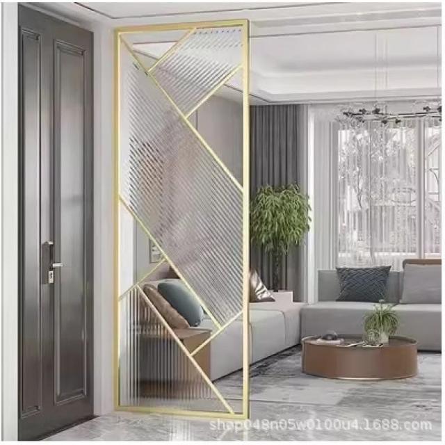 工廠直髮 現代北歐輕奢長虹玻璃屏風入戶創意玄關裝飾墻鐵藝不銹鋼餐廳隔擋