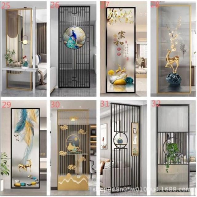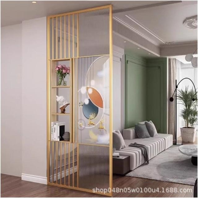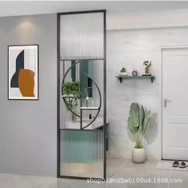 工廠直髮 現代北歐輕奢長虹玻璃屏風入戶創意玄關裝飾墻鐵藝不銹鋼餐廳隔擋