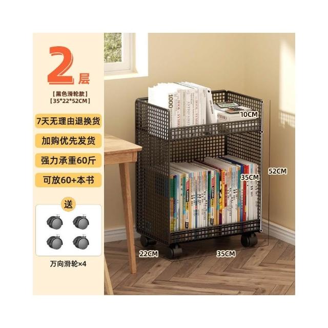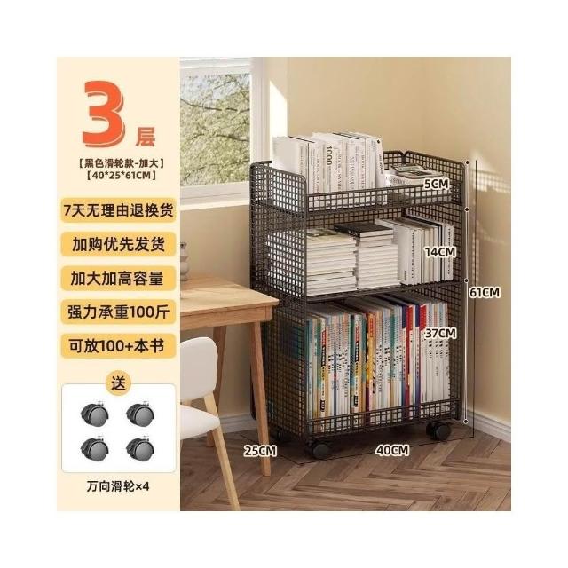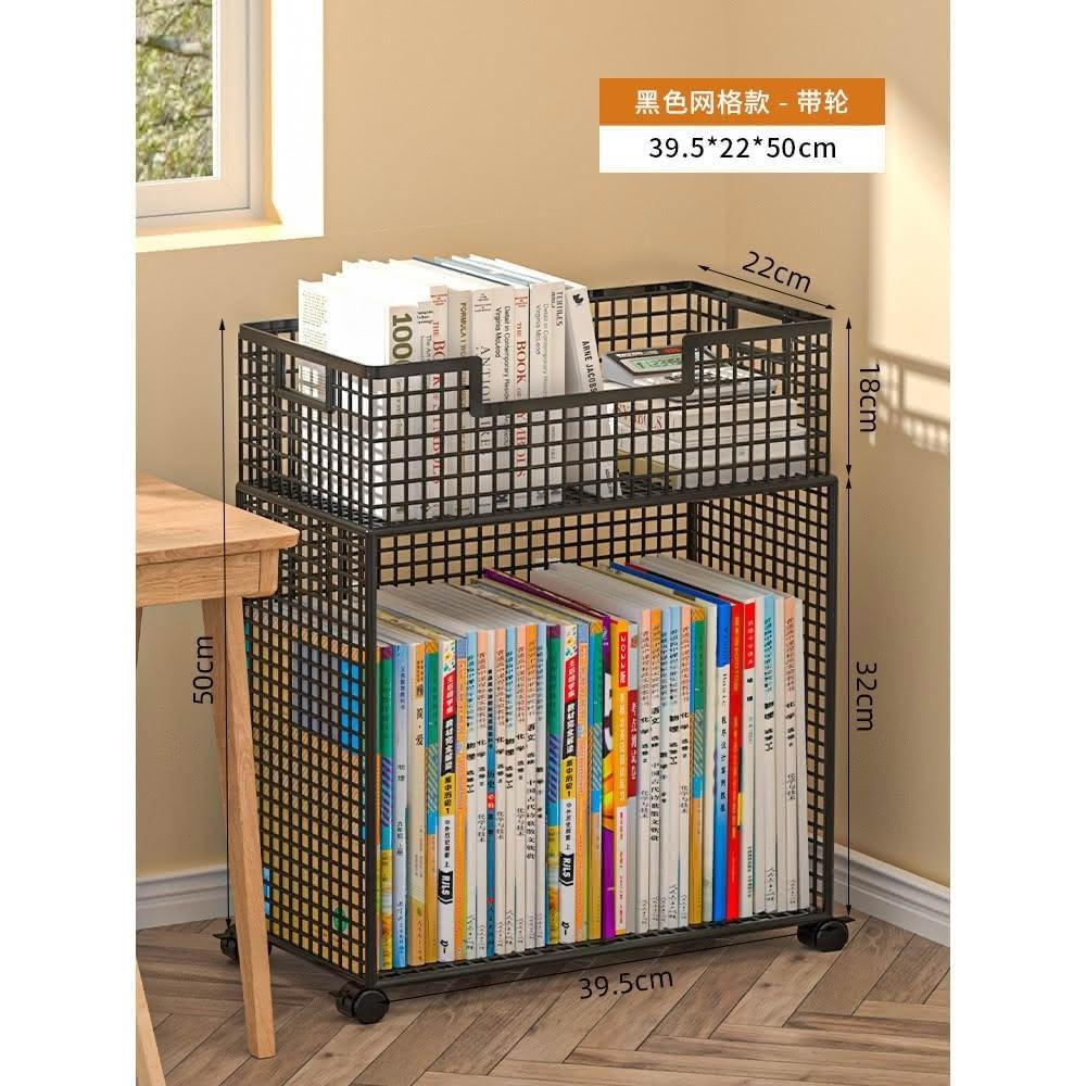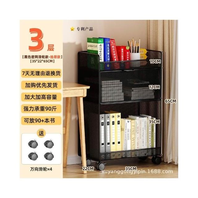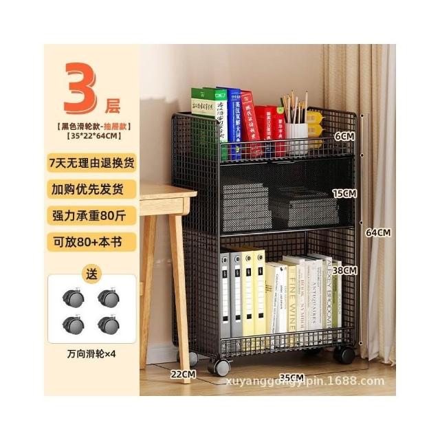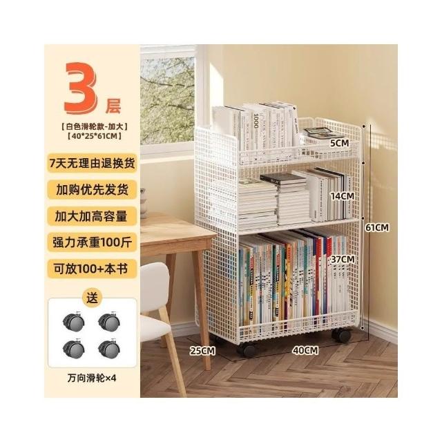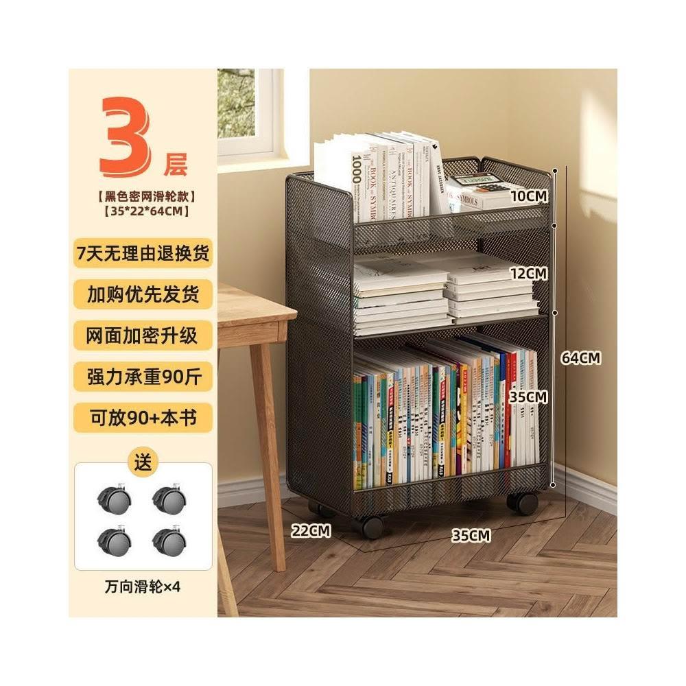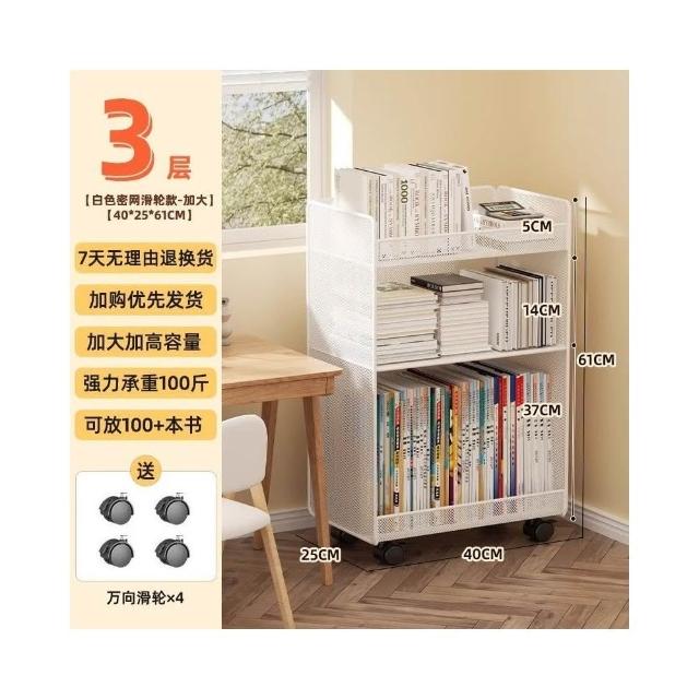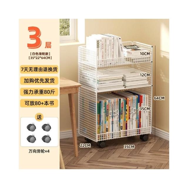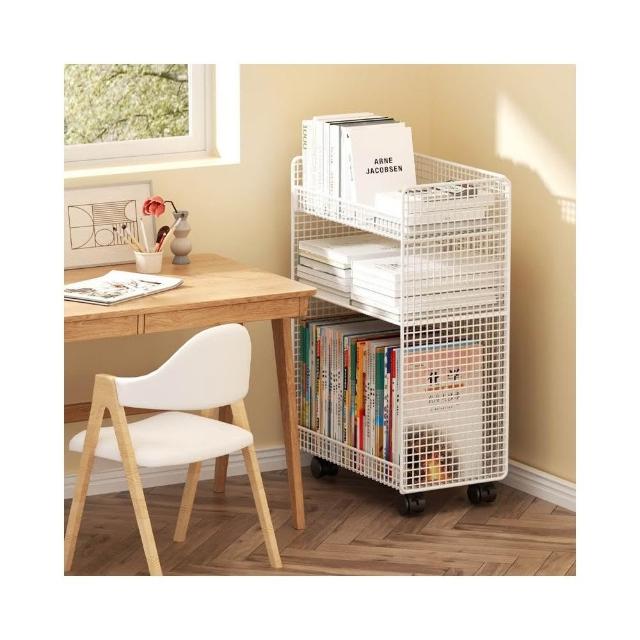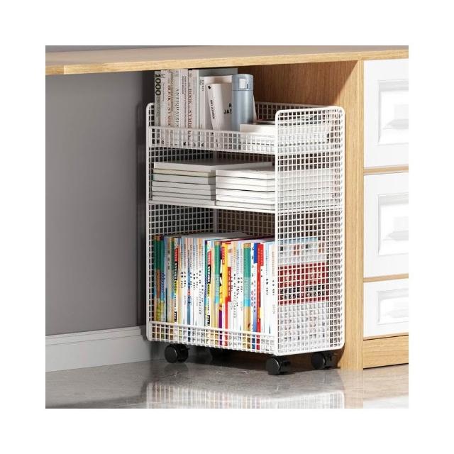 桌下置物架 宿捨書桌旁書架 可移動帶輪落地辦公桌邊推車 繪本收納架