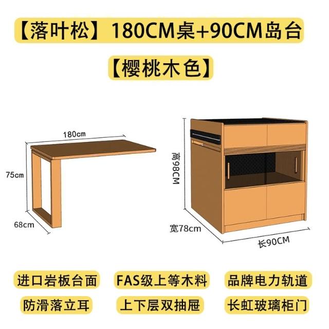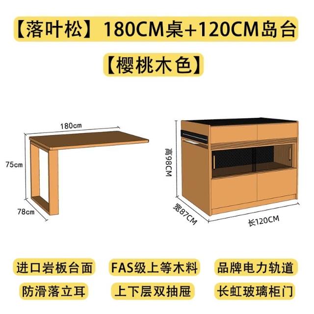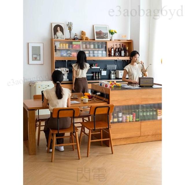 新品 實木岩板島台餐桌一體廚房日式櫻桃木伸縮中島台收納餐邊櫃儲物櫃